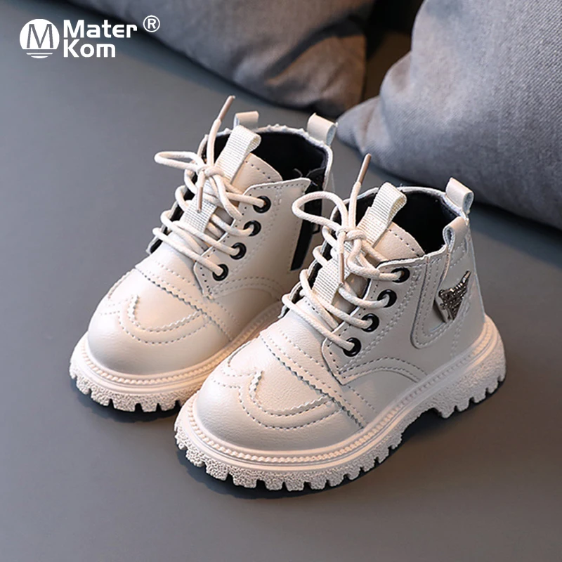 Ботинки мартинсы для мальчиков и девочек, модные короткие кожаные сапоги, детская повседневная обувь, размеры 21-30, осень