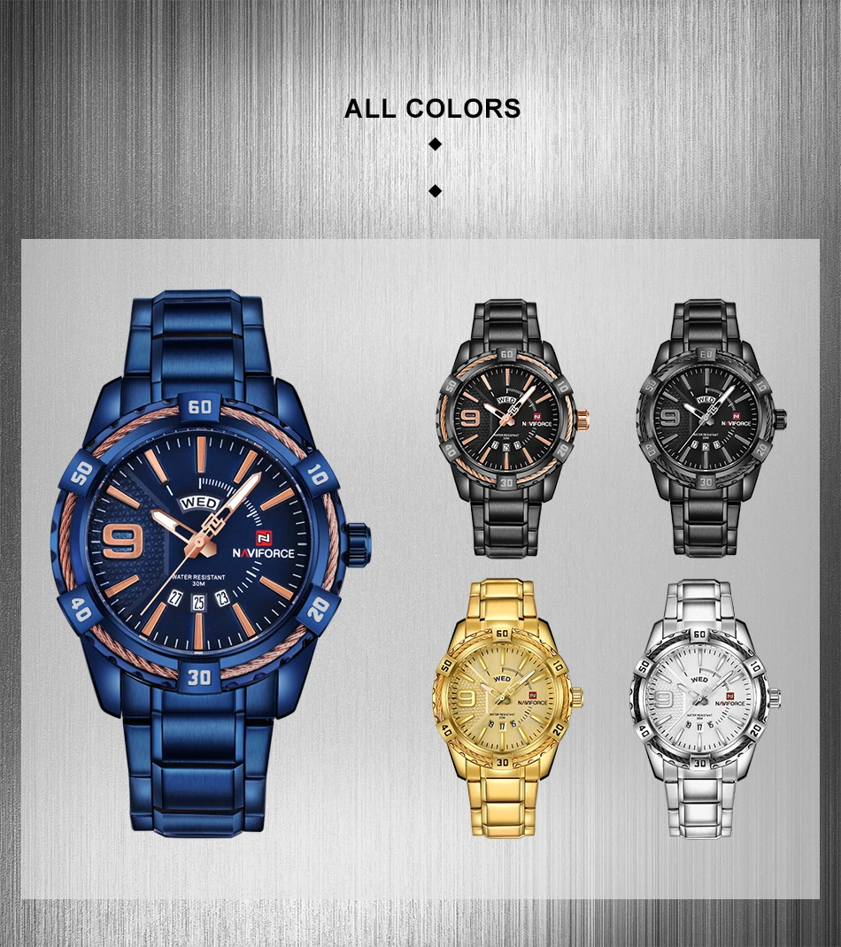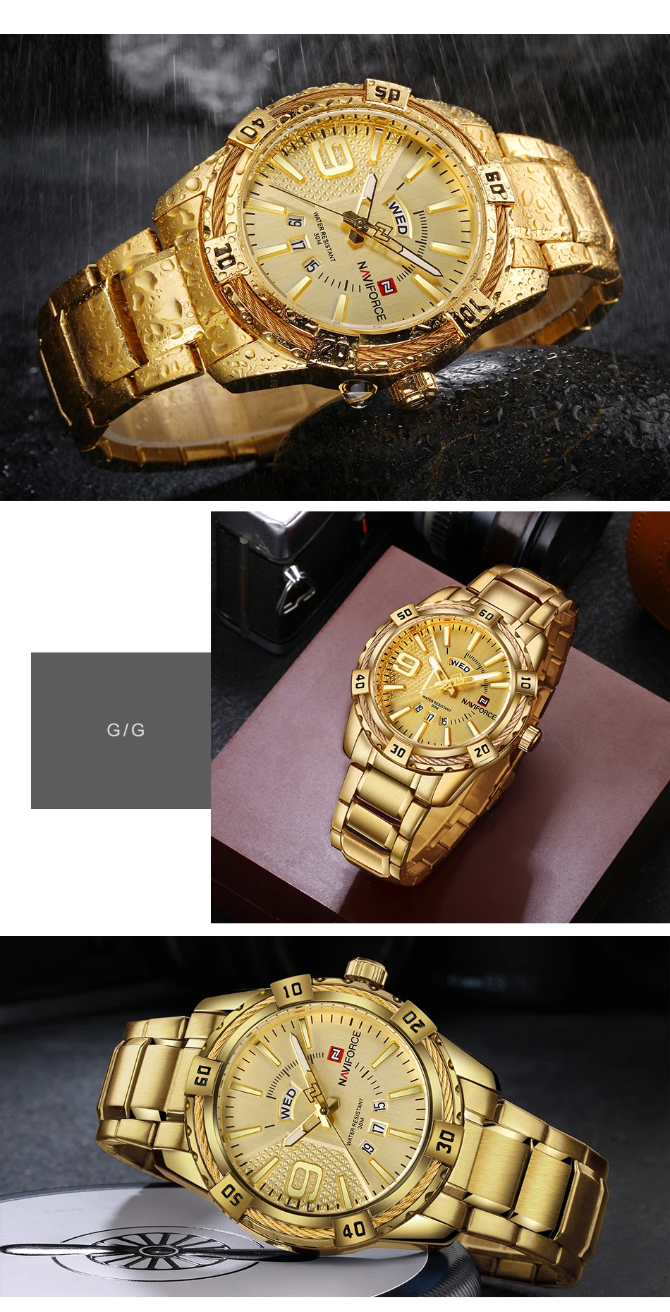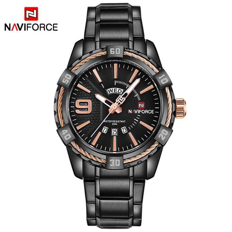 Часы наручные NAVIFORCE Мужские кварцевые, роскошные Брендовые спортивные водонепроницаемые в стиле милитари, со стальным браслетом, с датой