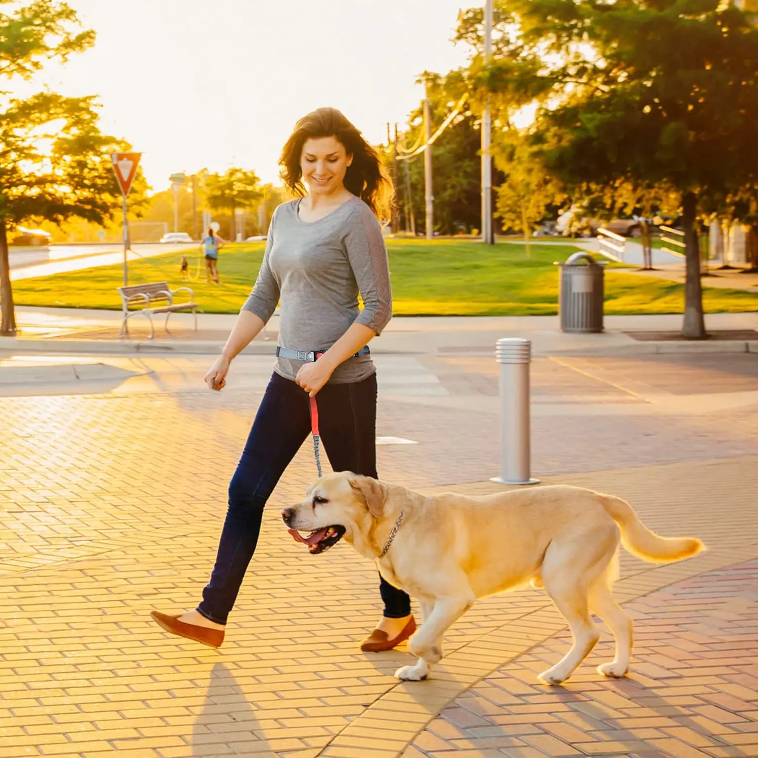 почему-то думала, что в поводок будет длиннее, но это не критично. В целом очень довольна - как же удобно выгуливать и быть со свободными руками. Особенно это удобно во время морозов :) размер талии человека регулируются и прекрасно можно подстроить диаметр под пуховик. Надо еще подобрать ошейник под такой поводок
