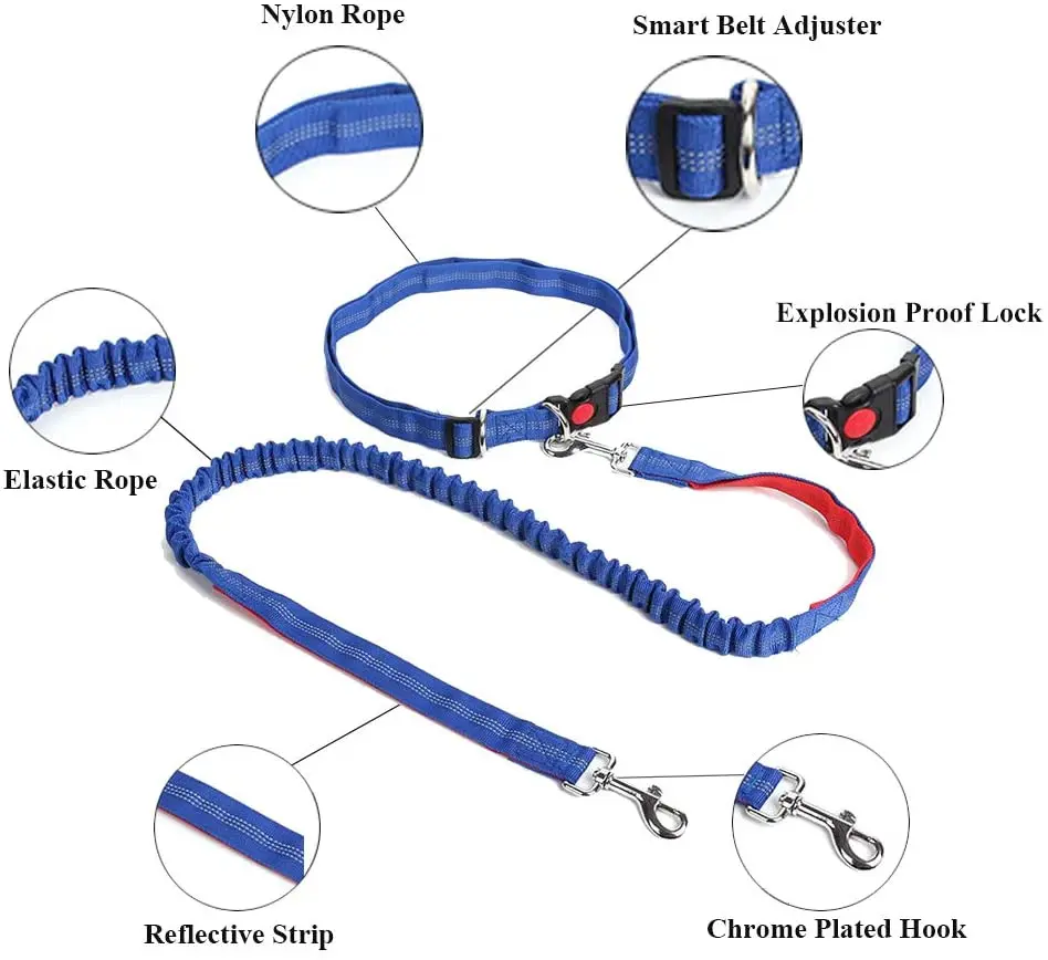 Светоотражающий поводок TNLY, поводок для собак, эластичный поводок для бега, свободные руки, металлический поводок с D-образным кольцом