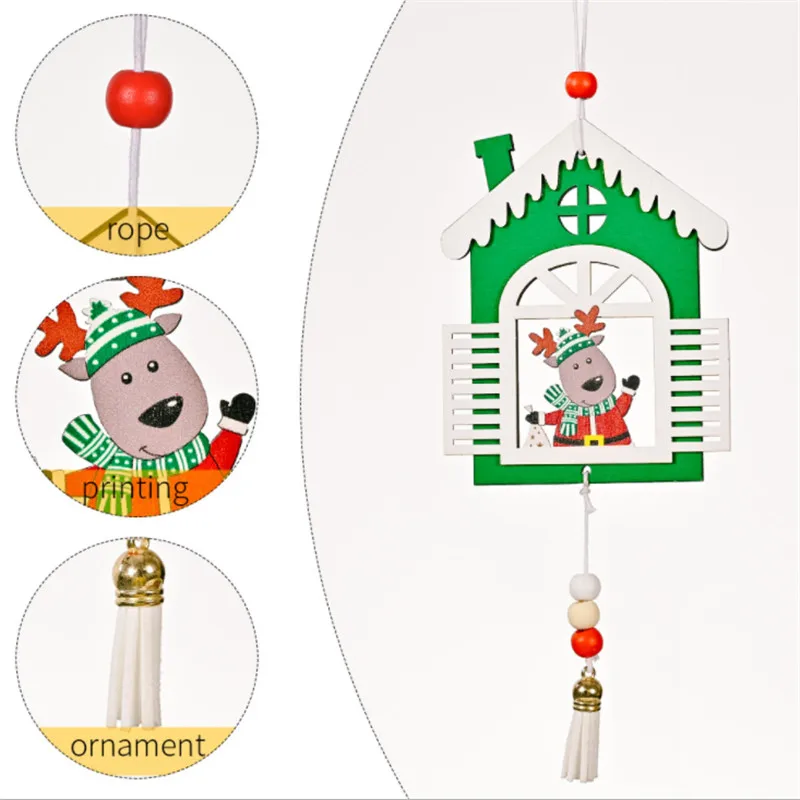 Рождественские украшения, деревянный маленький дом, подвеска с кист...