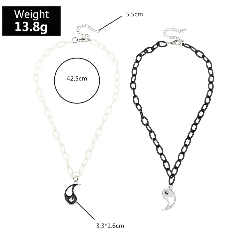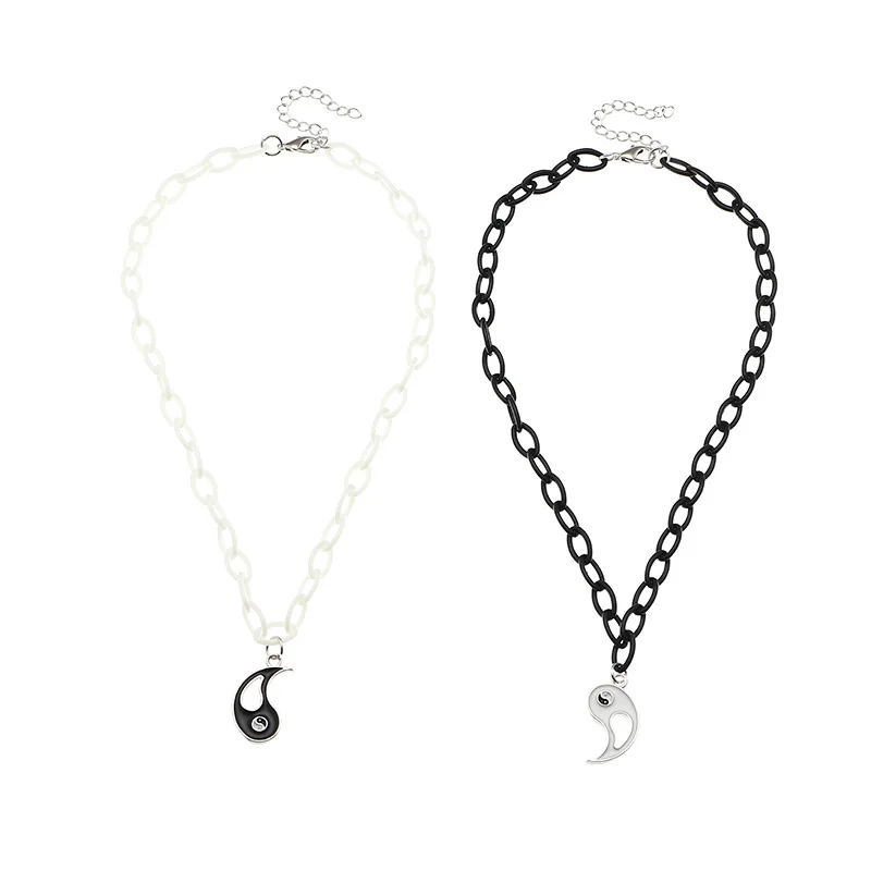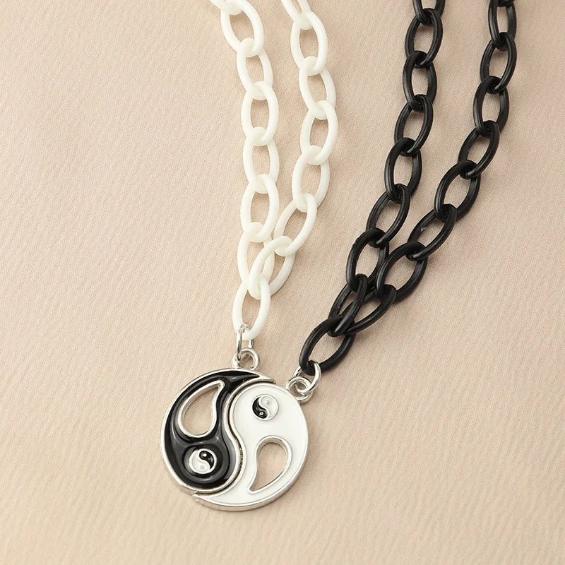 1 пара панк звеньевая цепь тайчи ожерелья для женщин мужчин любовник лучший друг хип-хоп Инь Янь двойное ожерелье ювелирные изделия