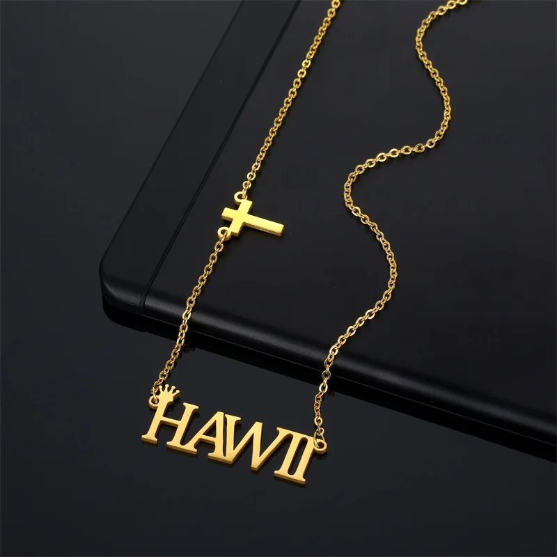 Ожерелье женское из нержавеющей стали, с короной и надписью на заказ