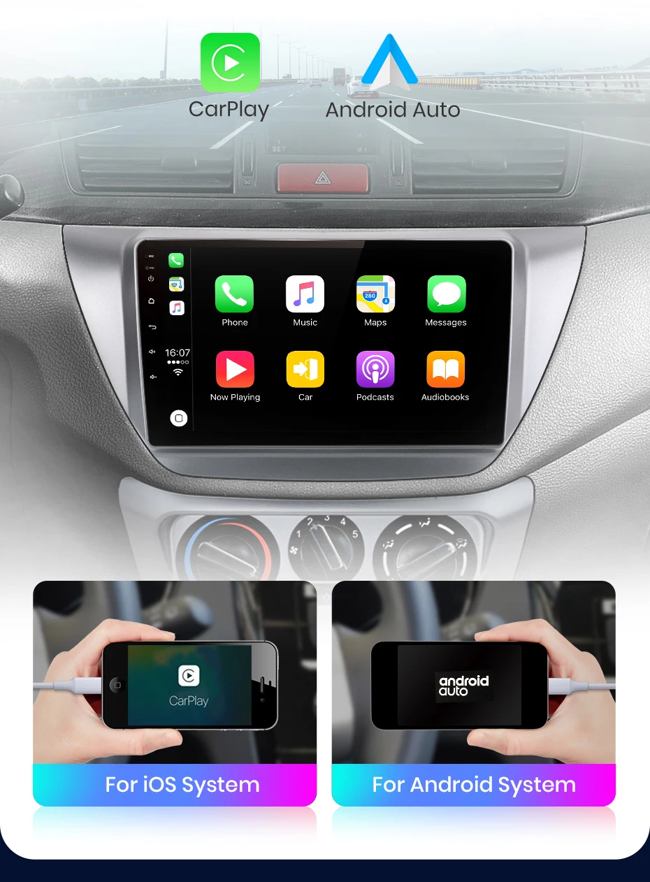 Телефон | Музыка | Карты | Подкасты и т. Д.Встроенная функция Carplay и Android Auto, вам нужно всего лишь использовать usb-кабель для соединения телефона и радио, управления и управления мобильными телефонами через устройство, откройте безопасную жизнь вождения.
