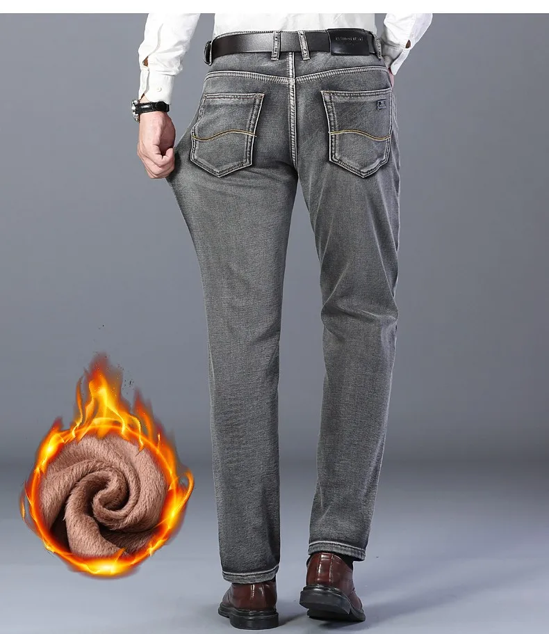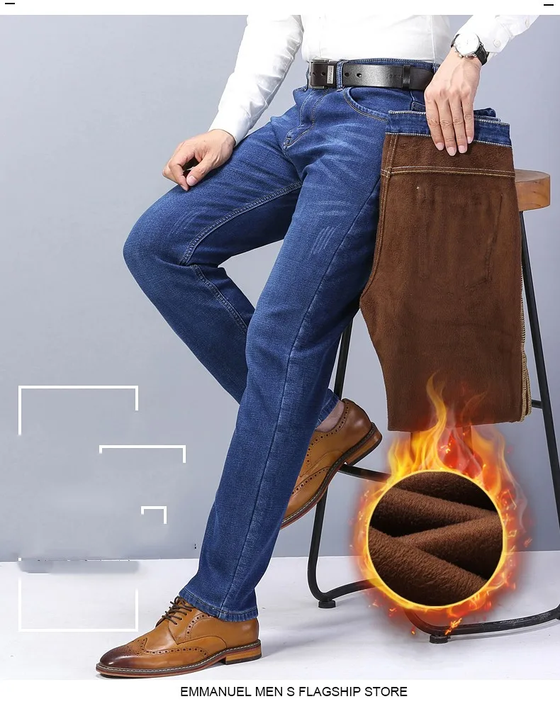 Мужские зимние теплые флисовые джинсы модные повседневные классичес...
