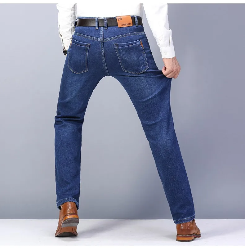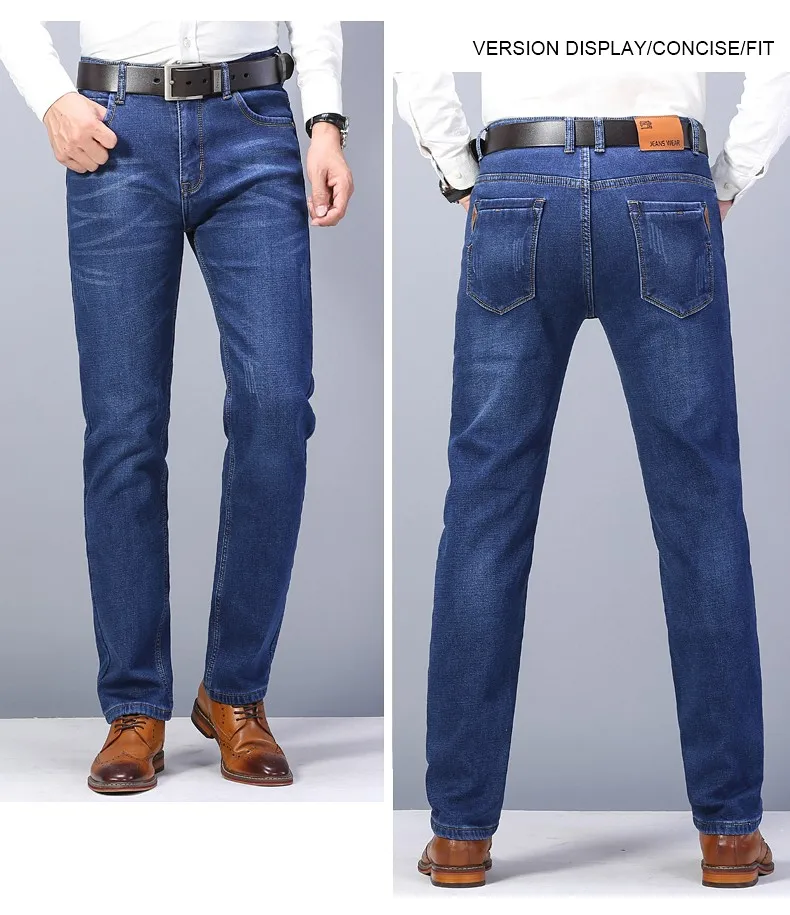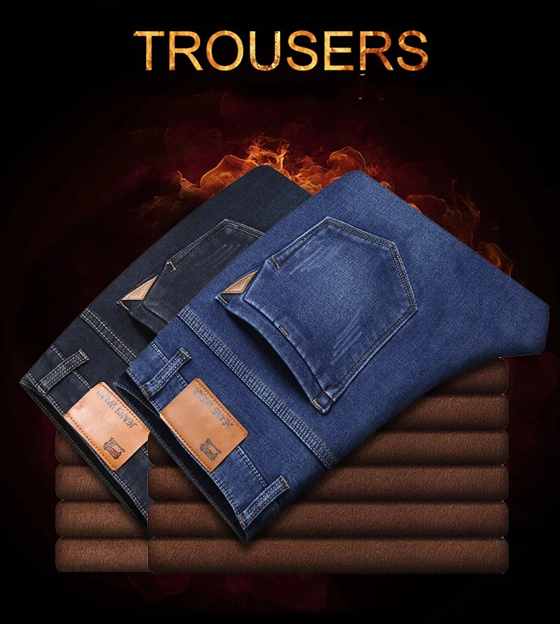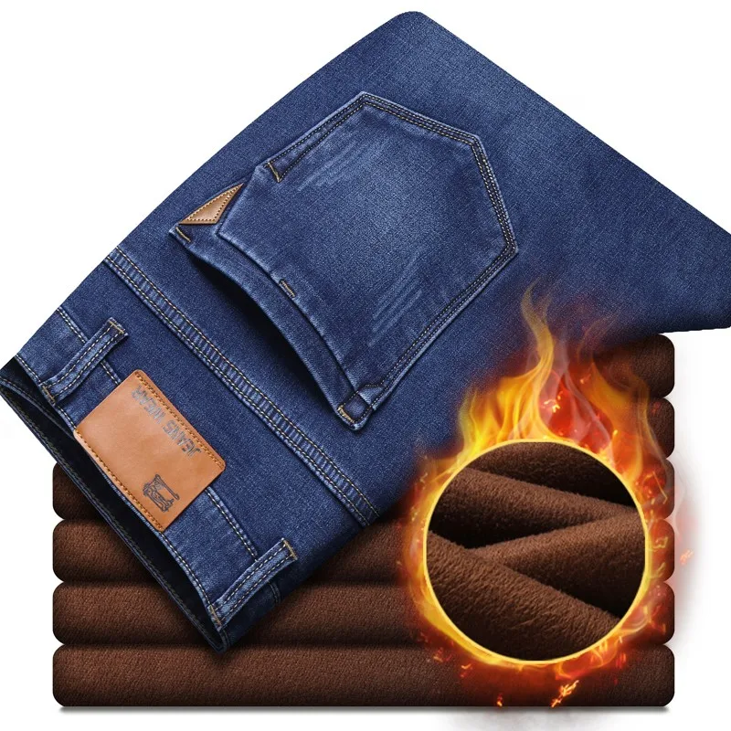 Мужские теплые джинсы стрейч, зимние Фирменные Штаны на флисе, 2021, прямые мужские брюки