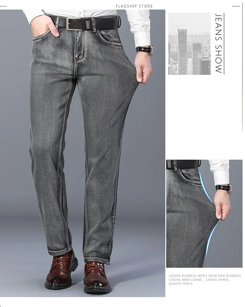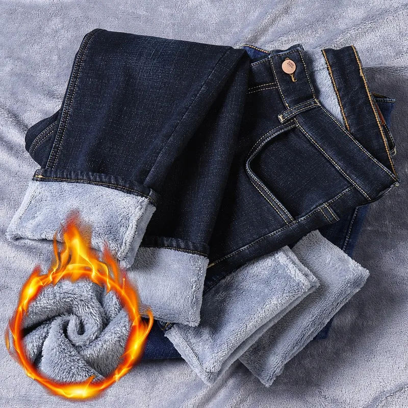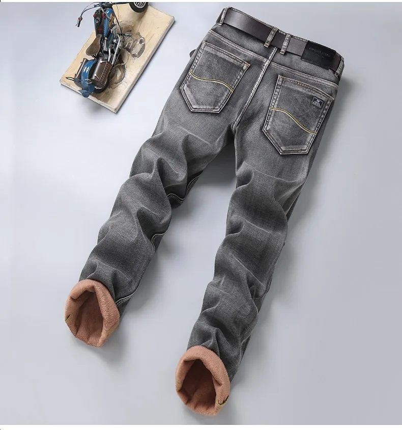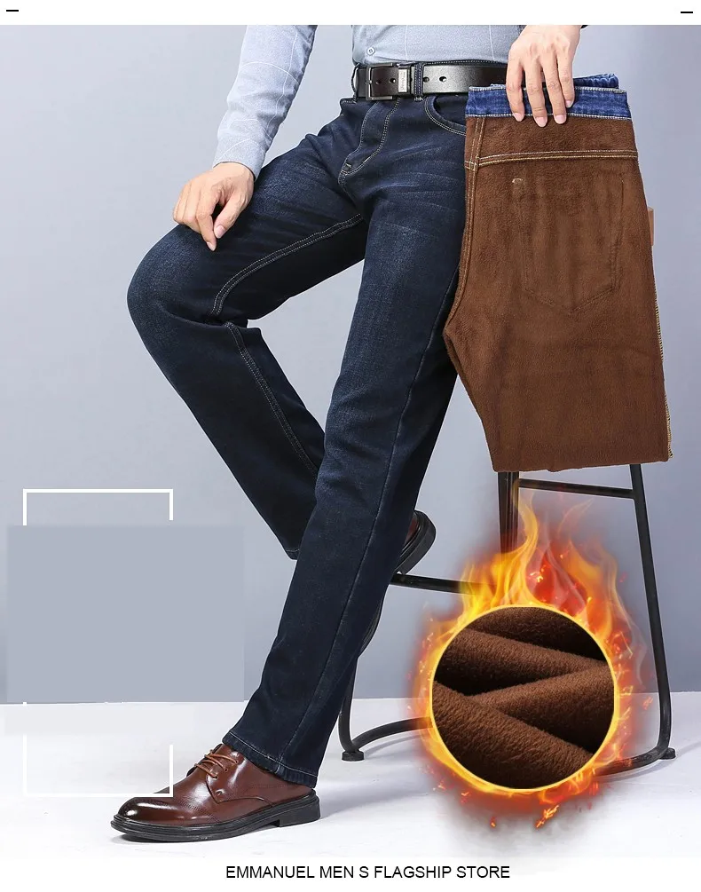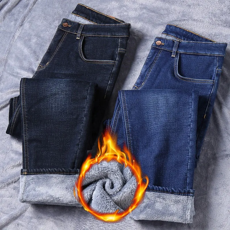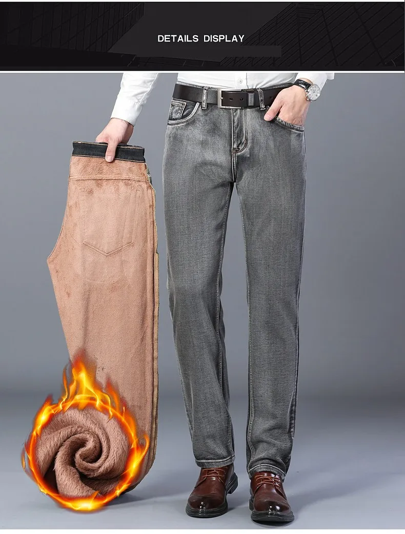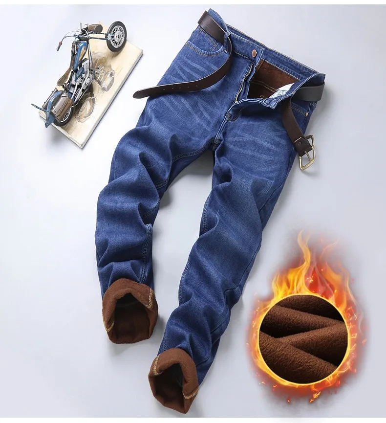 2021 зимние мужские теплые флисовые джинсы, Стрейчевые повседневные...