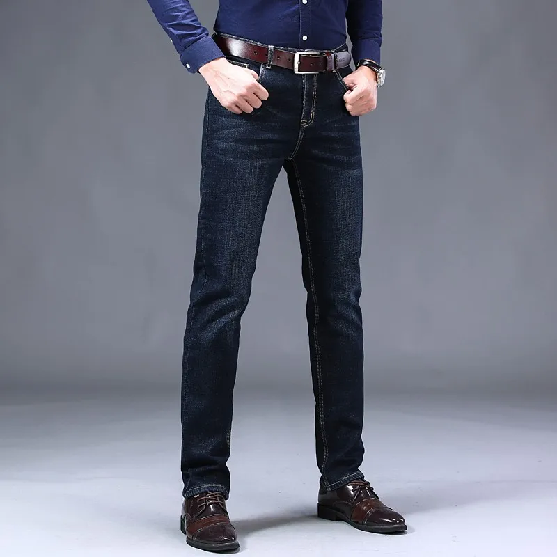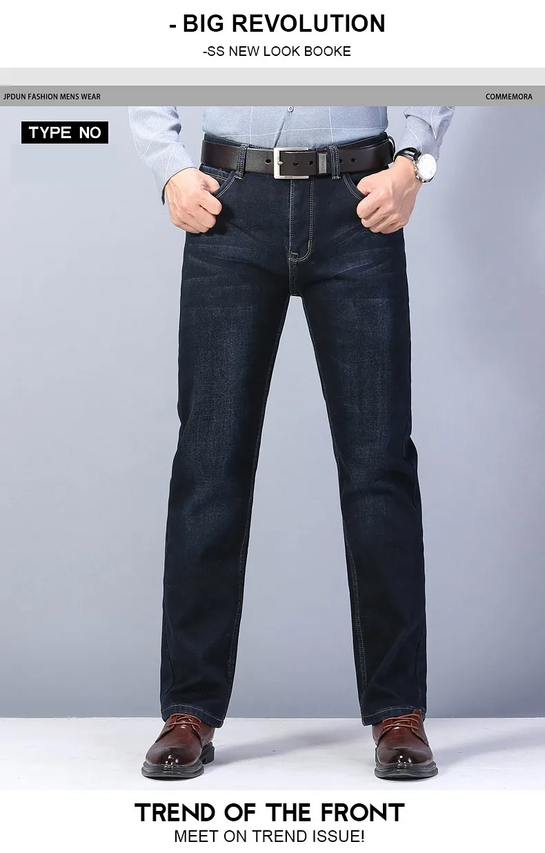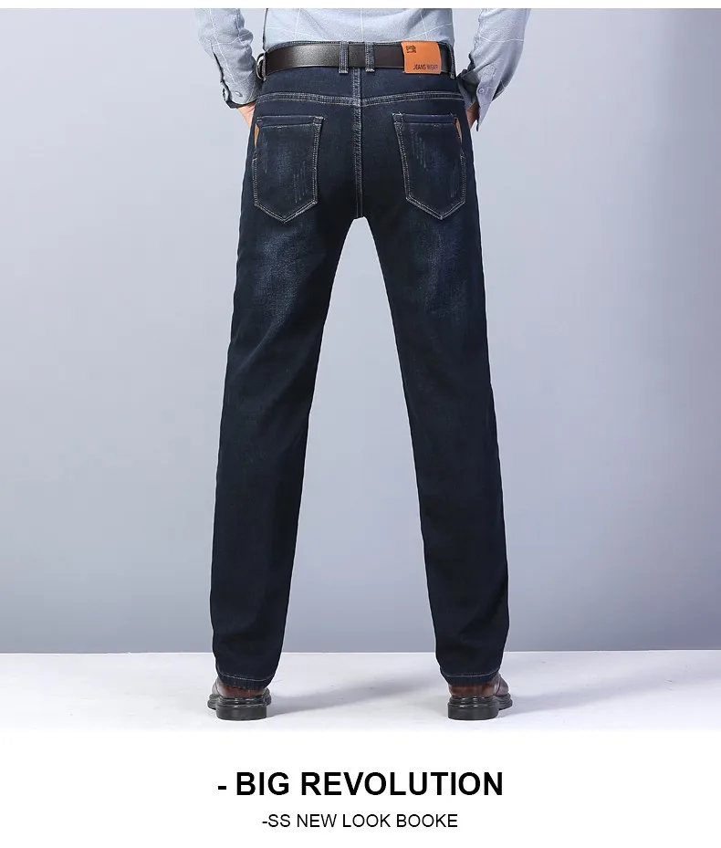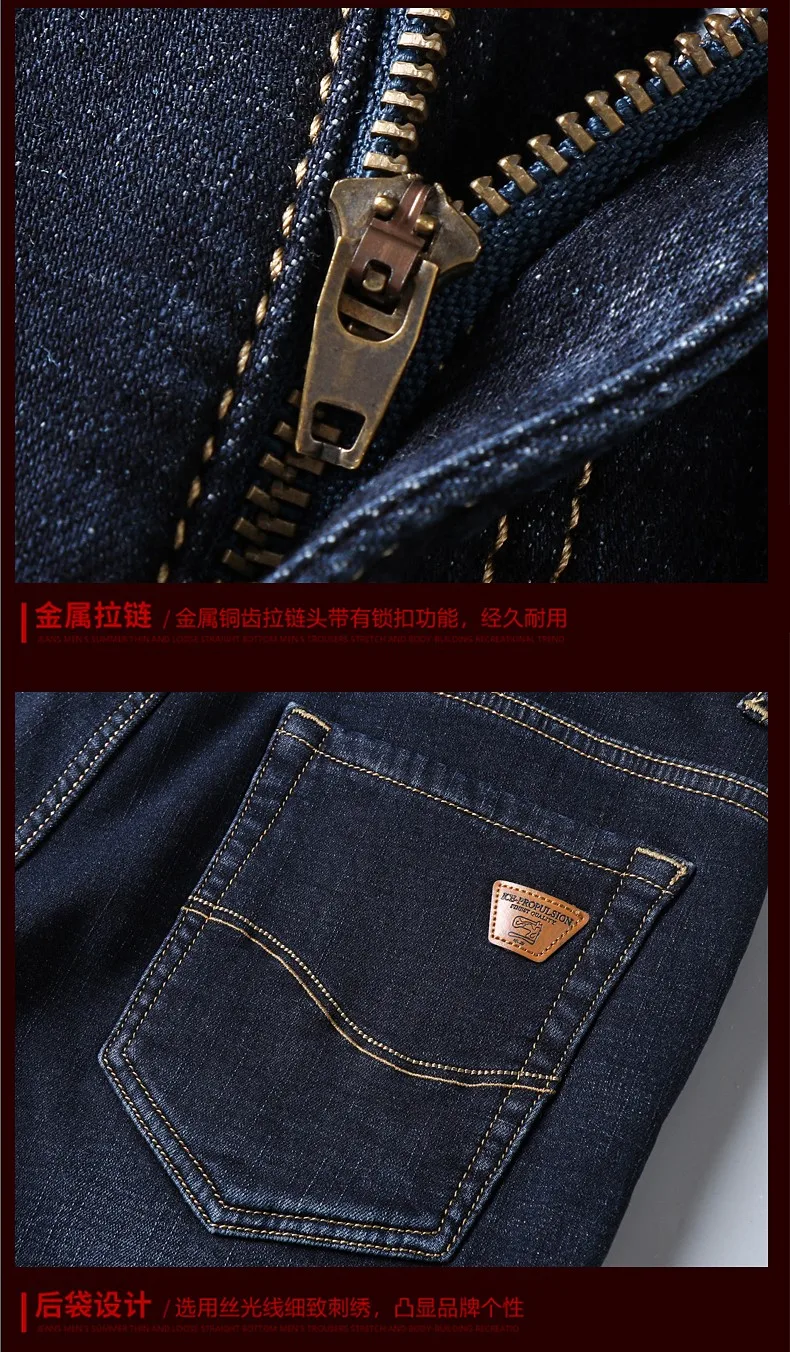 Мужские теплые джинсы, темно-синие прямые повседневные джинсы из фл...