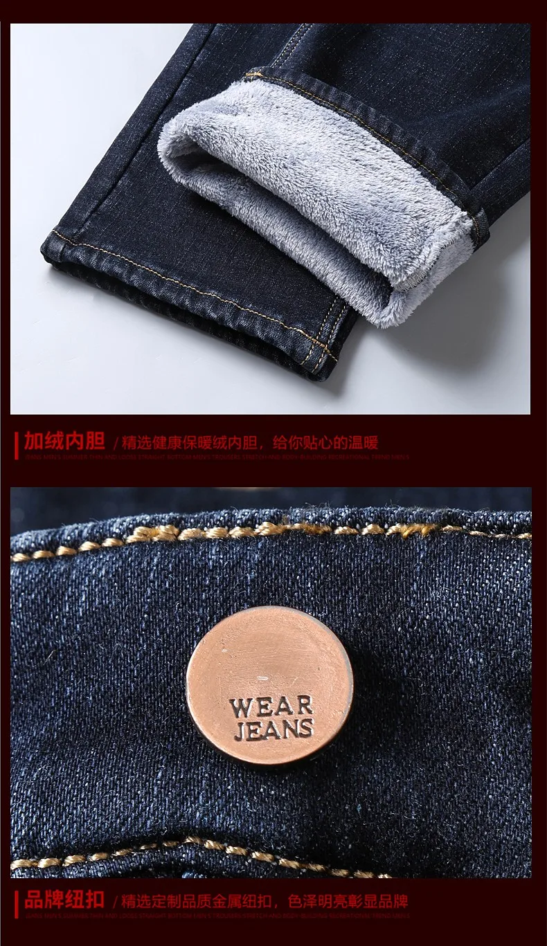 Большого размера плюс мужские теплые джинсы 2019 Новинка зимы модна...