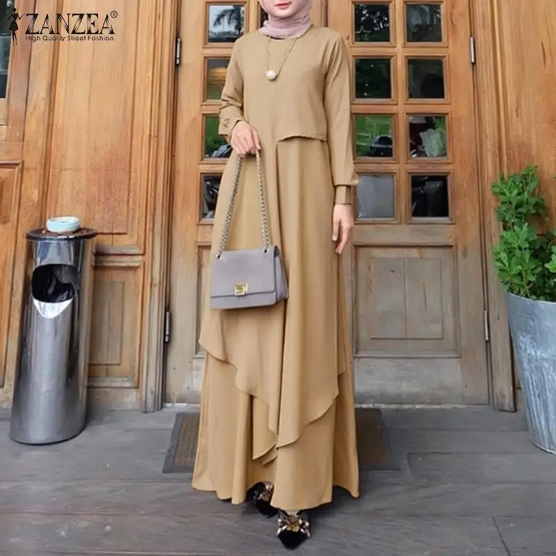 Платье ZANZEA женское с длинным рукавом, винтажный хиджаб из Дубая,...