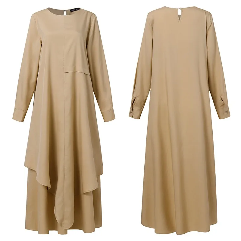 Винтажное мусульманское однотонное платье, Женский Осенний сарафан ...