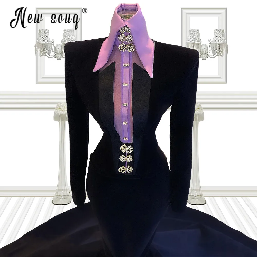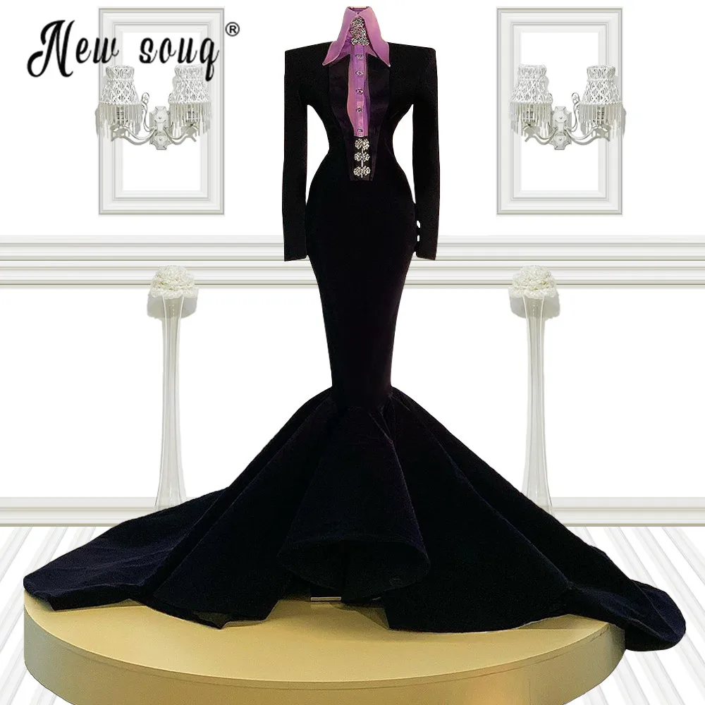 Марокканские вечерние платья русалки с высоким воротом и длинным рукавом 2021, мягкие бархатные платья для выпускного вечера, мусульманские длинные женские вечерние платья с кристаллами