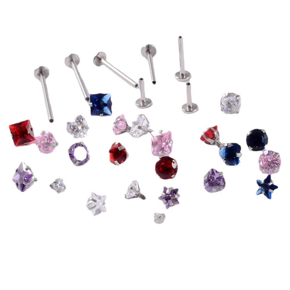 10 шт., 16 г, циркониевый верх для губ, шпильки из циркония, компоненты с внутренней резьбой для зубца, драгоценный камень, Монро, Козелка, спираль, пирсинг ушей