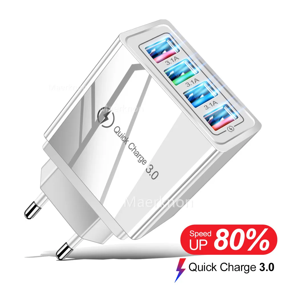 Зарядное устройство USB Quick Charge 3,0 4 порта телефонный адаптер для Huawei iPhone 12 xiaomi Tablet портативное настенное мобильное зарядное устройство быстрое зарядное устройство