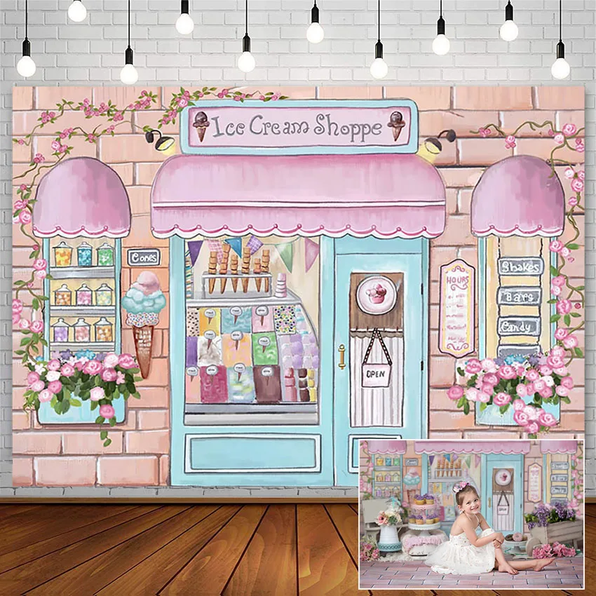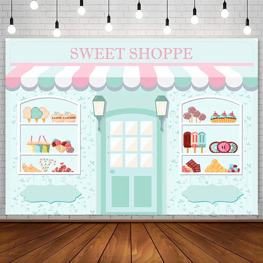 Милый магазин, фон для девочек, принцесса, украшение на день рождения, мороженое, Пончик, детский душ, розовый, синий фон для фотографий, реквизит для фотостудии