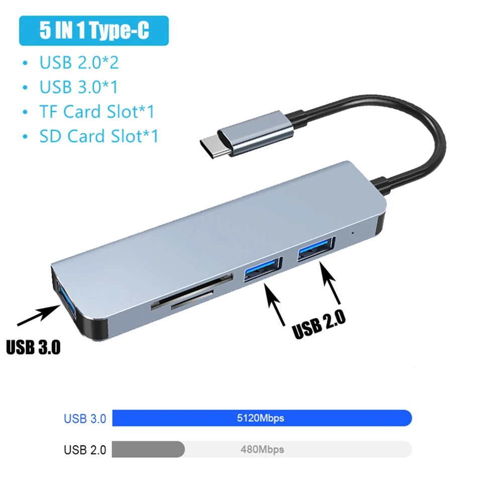 Стиль A: 5 в 1 B Модель: USB 3,0*1 + USB 2,0*2 + TF * 1 + SD * 1Стиль B: 4 в 1 Модель: USB 3,0*1 + USB 2,0*3