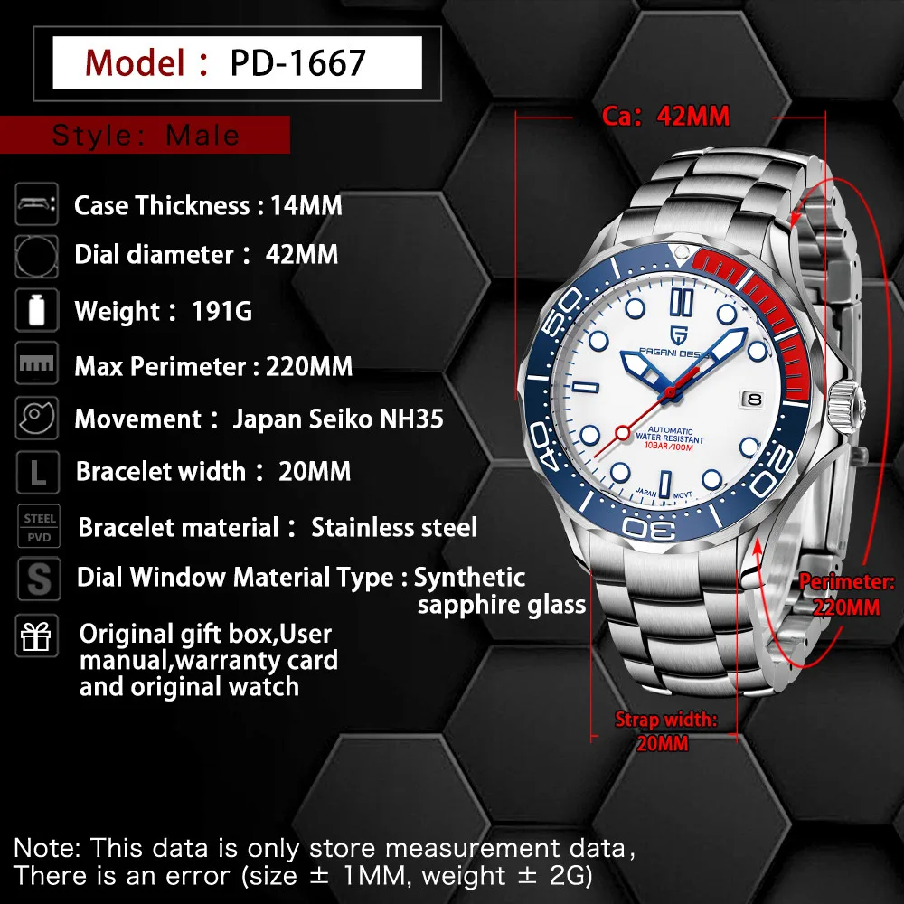 PAGANI DESIGN Brand 007 LuxuryMen watch