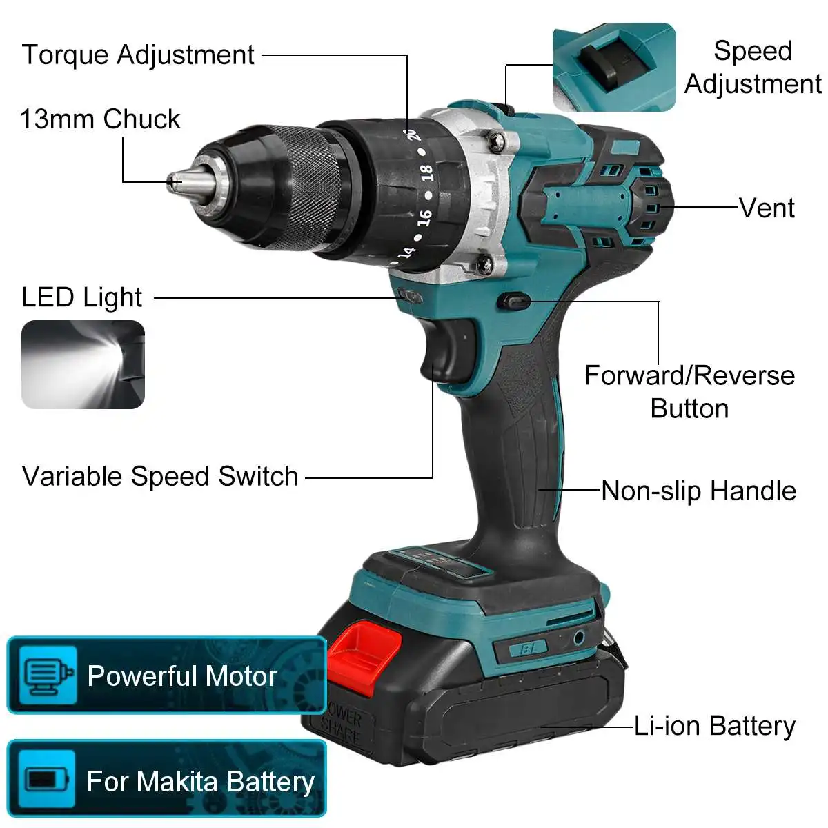 Бесщеточная электрическая дрель 20 крутящий момент 520N.M шуруповерт 13 мм патрон литий-ионный аккумулятор электрическая шуруповерт дрель