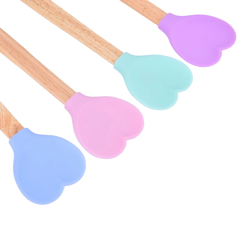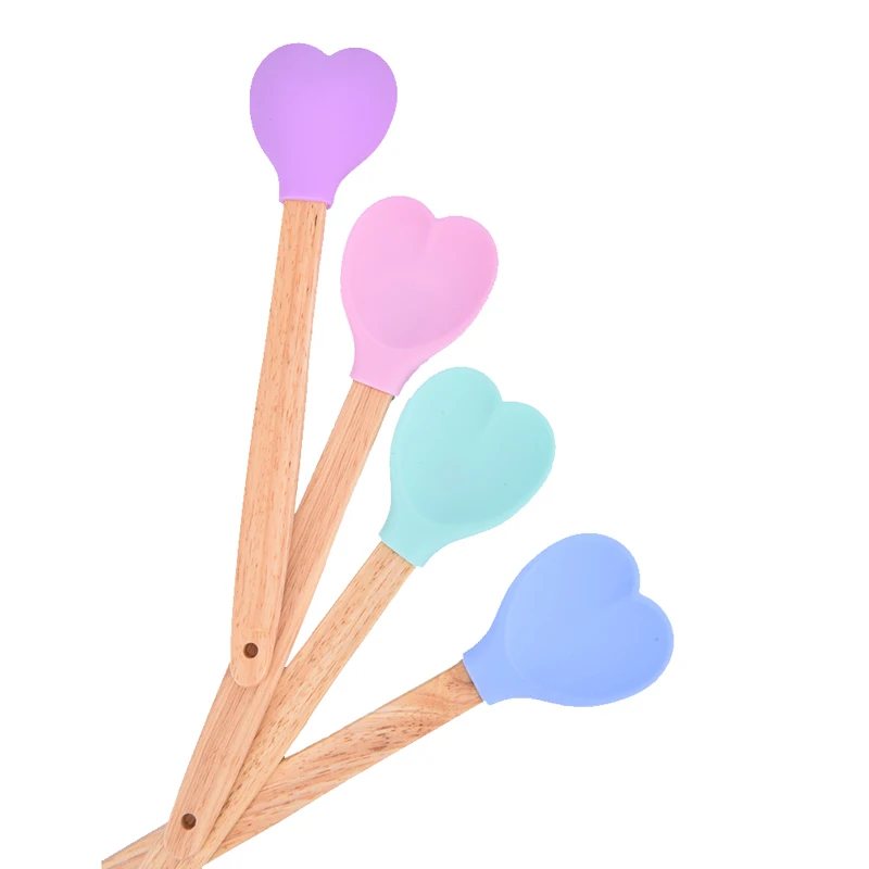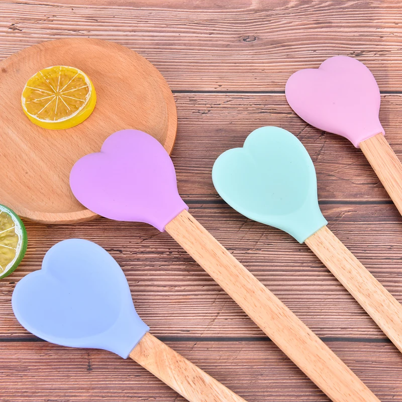 Лопатки силиконовые в форме сердца для теста с деревянной ручкой