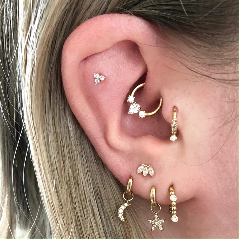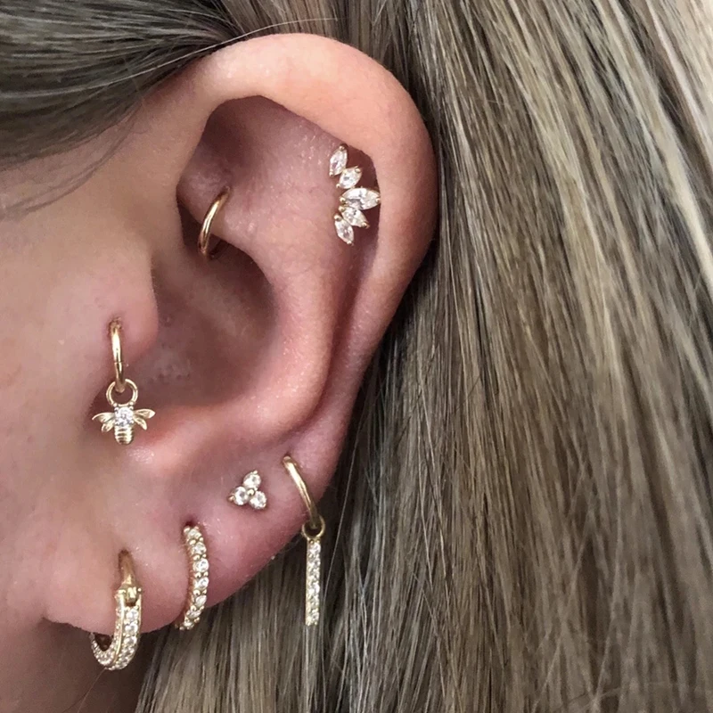 Женские серьги-гвоздики для пирсинга с фианитами