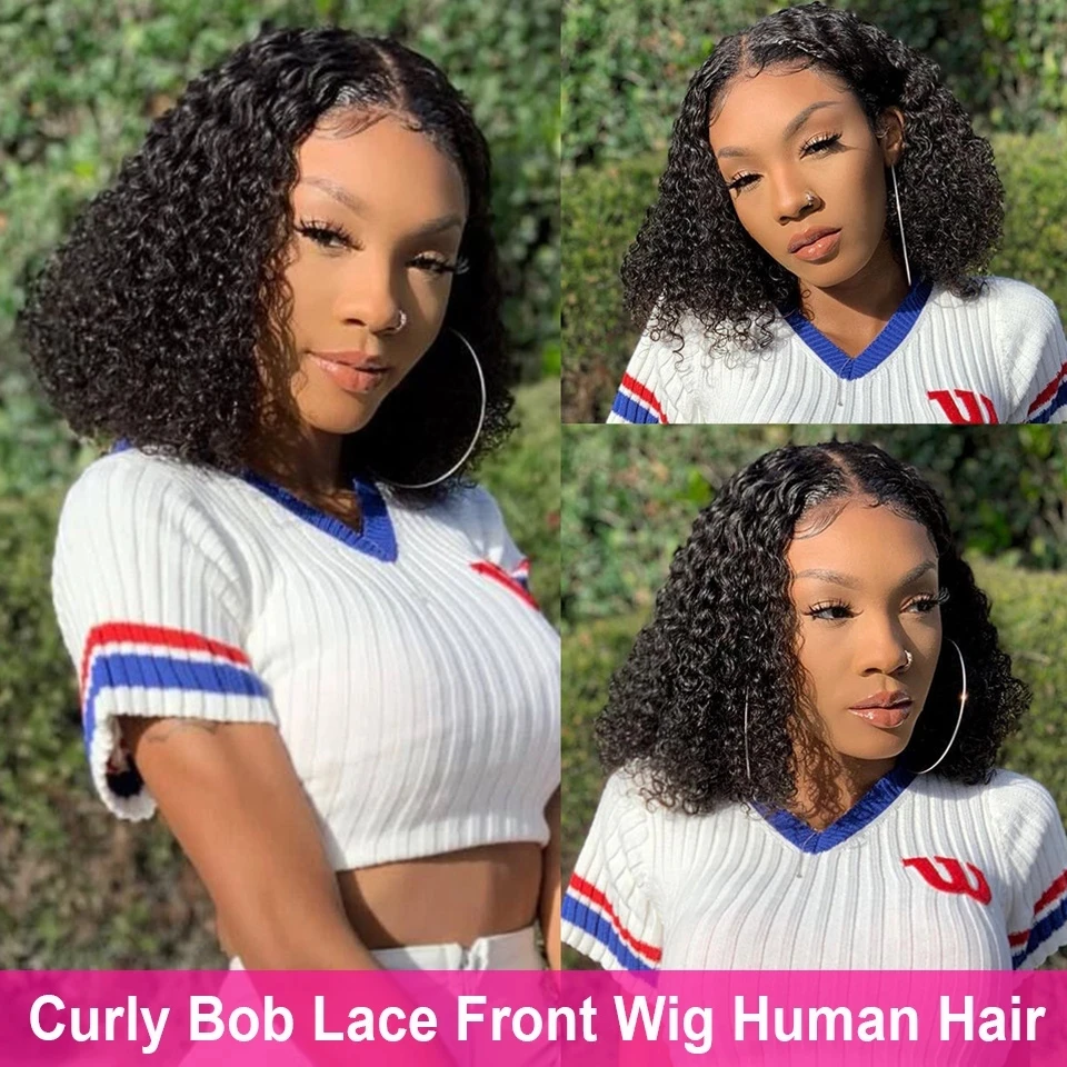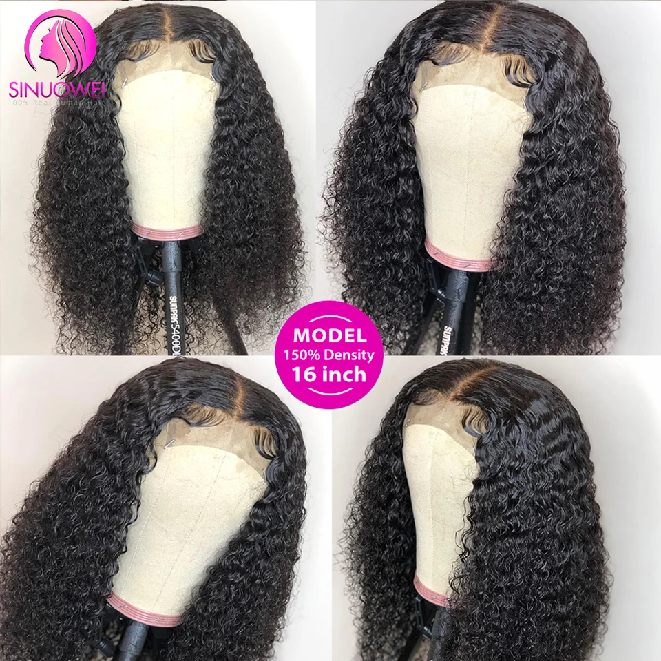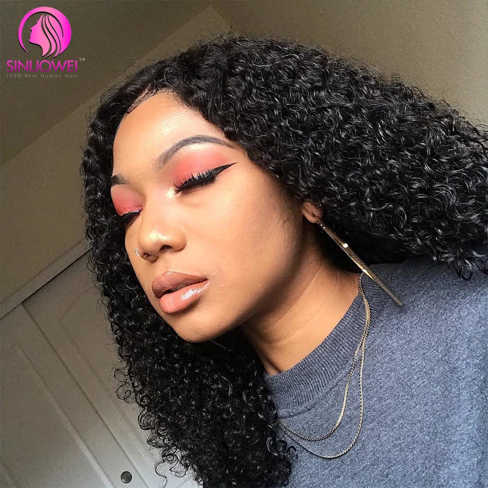 Короткие кудрявые T-образные парики Sinuowei 8-14 дюймов 13X1 4X1 из человеческих волос с кружевной передней частью, прозрачные парики для женщин 150%