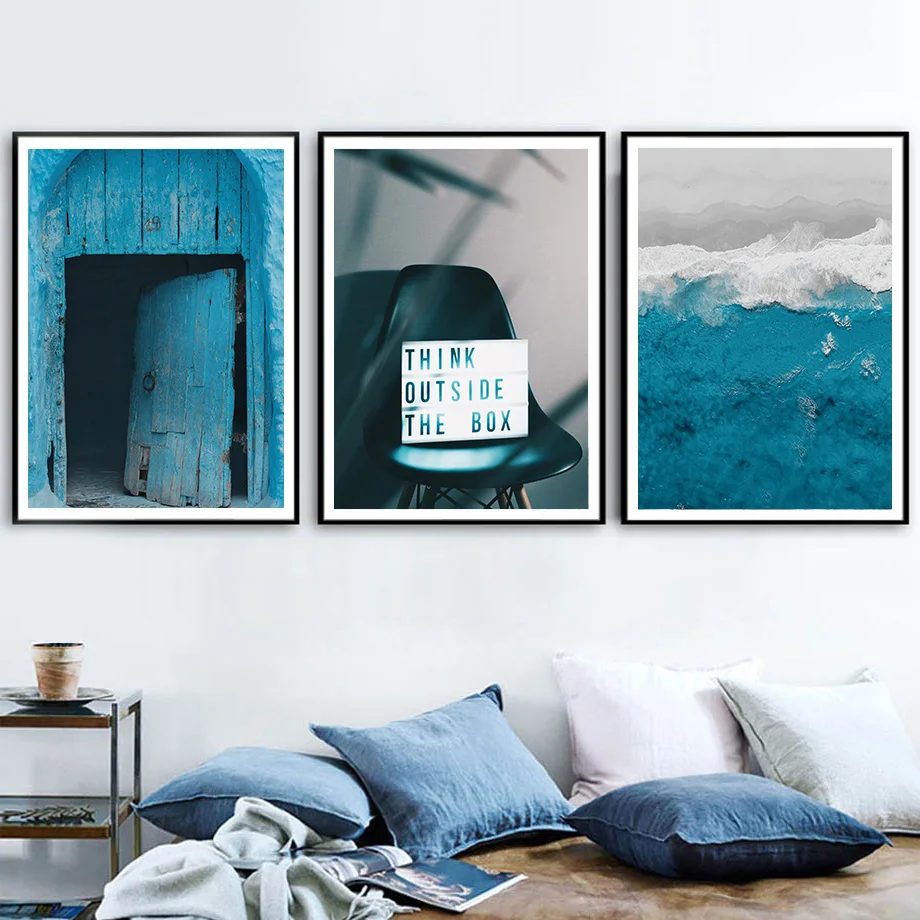 Настенная картина Blue Electric светильник Coast светильник Box, настенная Картина на холсте, скандинавские плакаты и принты, настенные картины для декора гостиной
