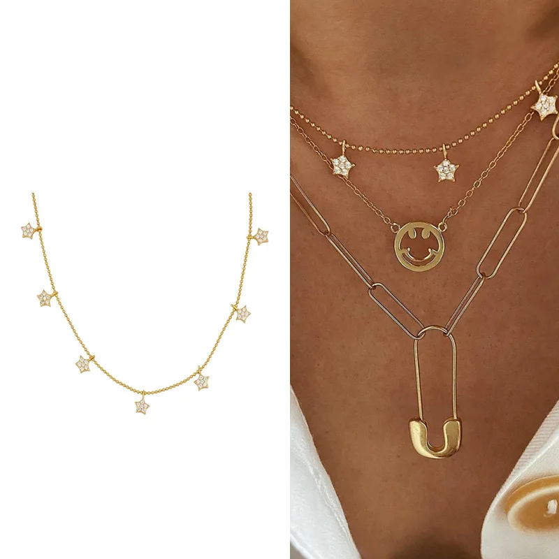 украшения 2021 бижутерия Цепочка парные кулоны подвеска на шею Женская цепочка на шею K-pop, роскошные Изящные Подвески с пентаграммой, золотистые блестящие женские украшения из нержавеющей стали на шею