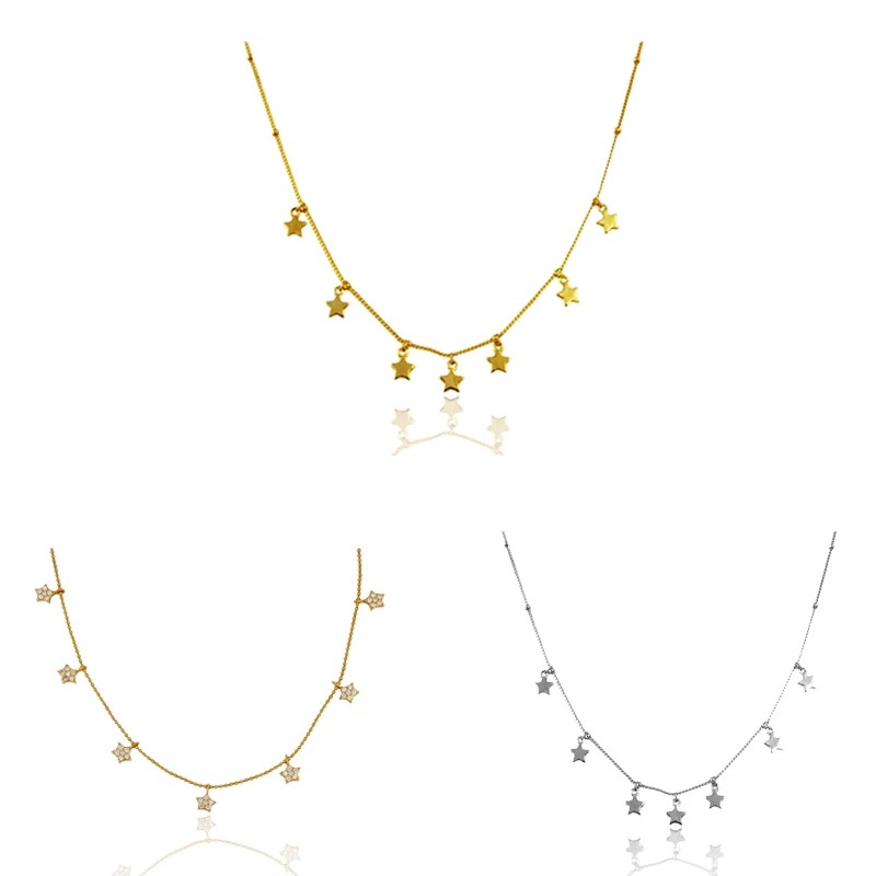 K-pop Женская цепочка на шею Роскошные тонкие Подвески с пентаграммой золотого серебряного цвета ожерелья женские ювелирные изделия из нержавеющей стали на шее
