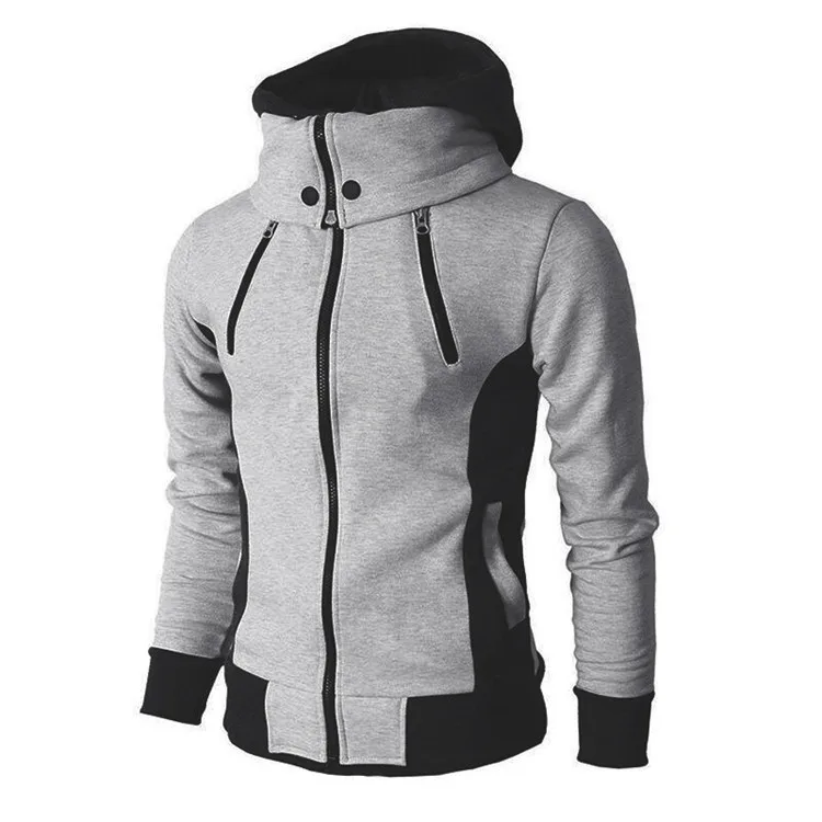 外贸爆款春秋新款青年假两件运动开衫休闲男装男士修身卫衣 外套