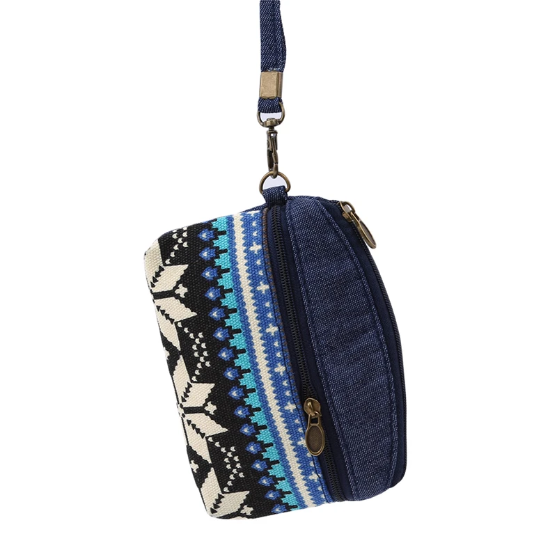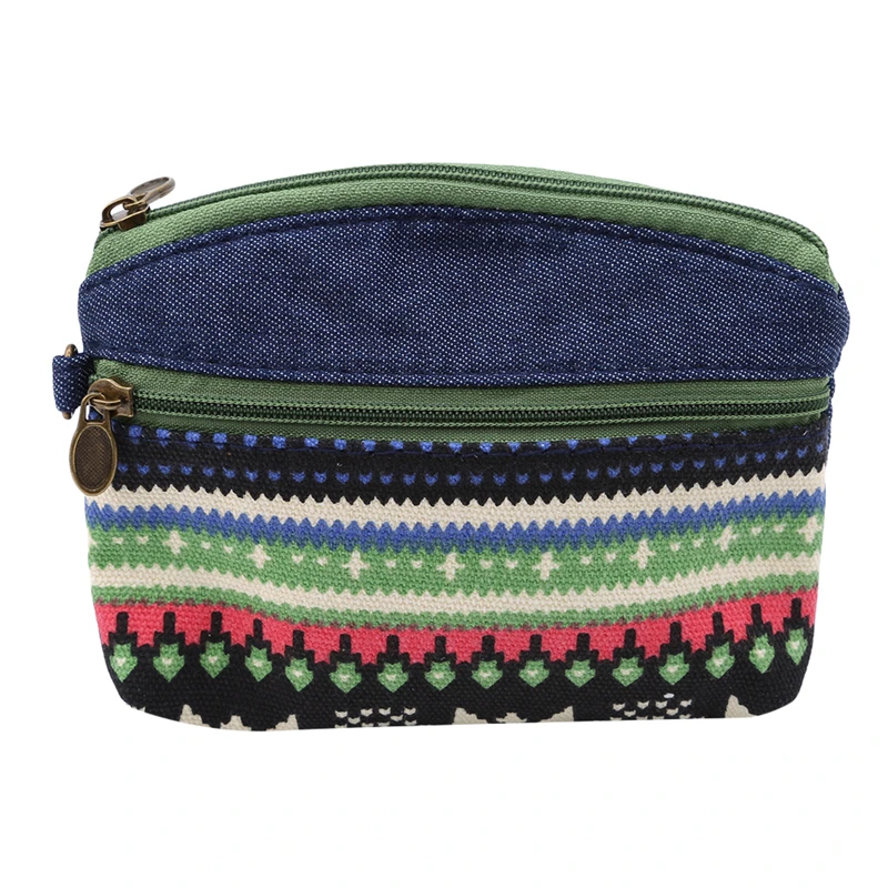 Этнический холщовый мини-кошелек, женские кошельки с двойной молние...
