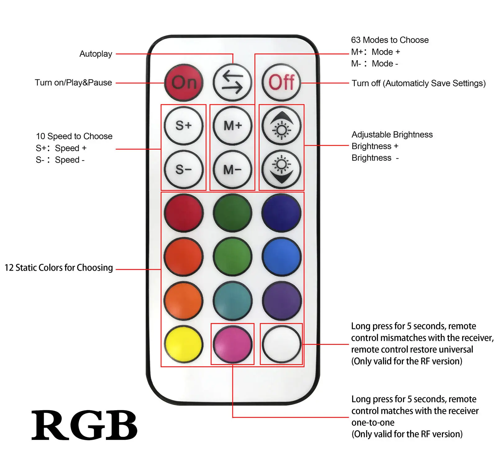 1 пульт дистанционного управления RF 24 ключа (теплый белый/холодный белый цвет без пульта дистанционного управления)