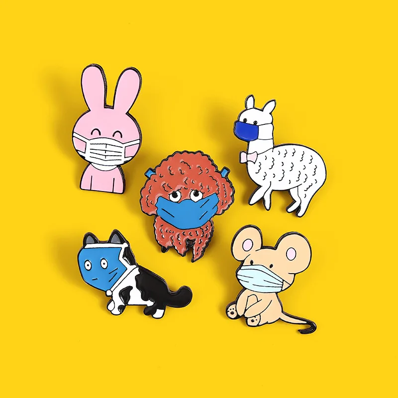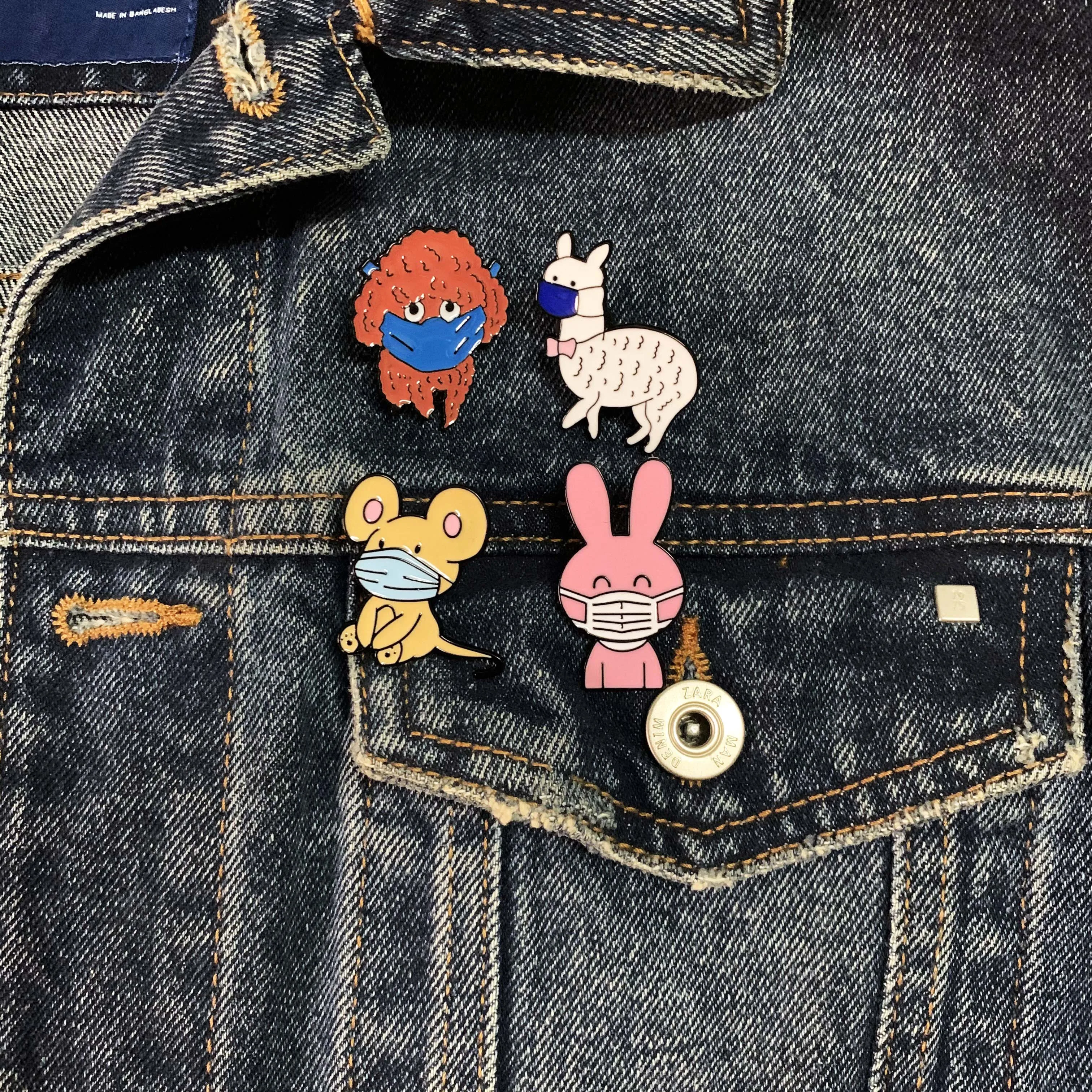 Мультфильм кролик мышь собака Альпака кошка носить брошь с маской м...