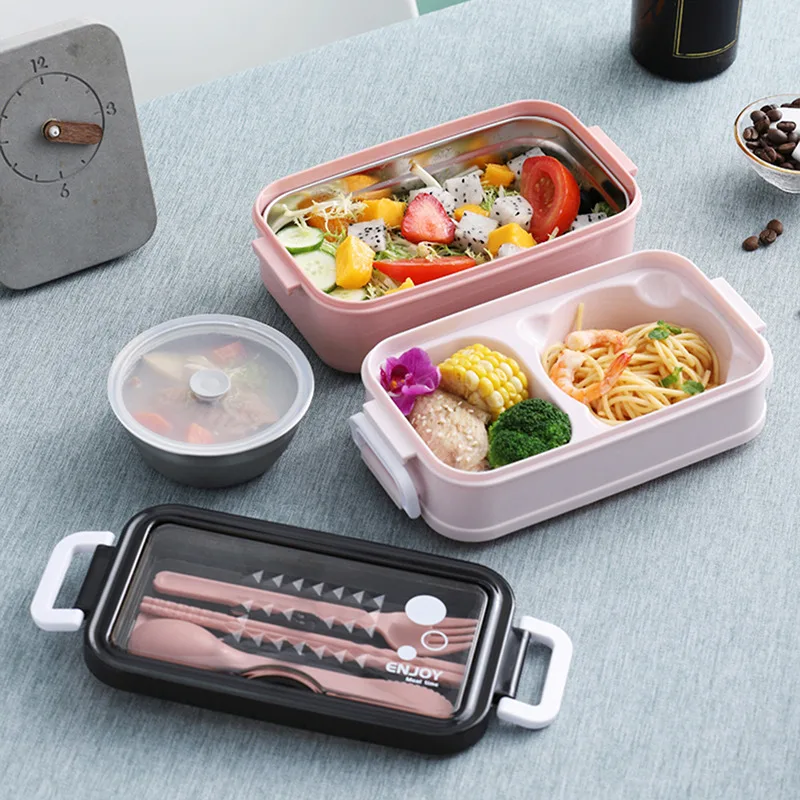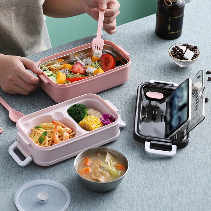2 слоя Нержавеющаясталь Коробки для обедов бенто ланч бокс для студ...