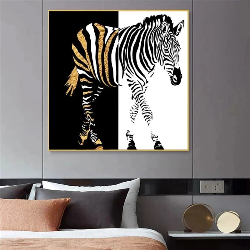 Современная Золотая белая и черная Зебра, Картина на холсте, плакаты и принты, настенные картины для гостиной, домашний декор