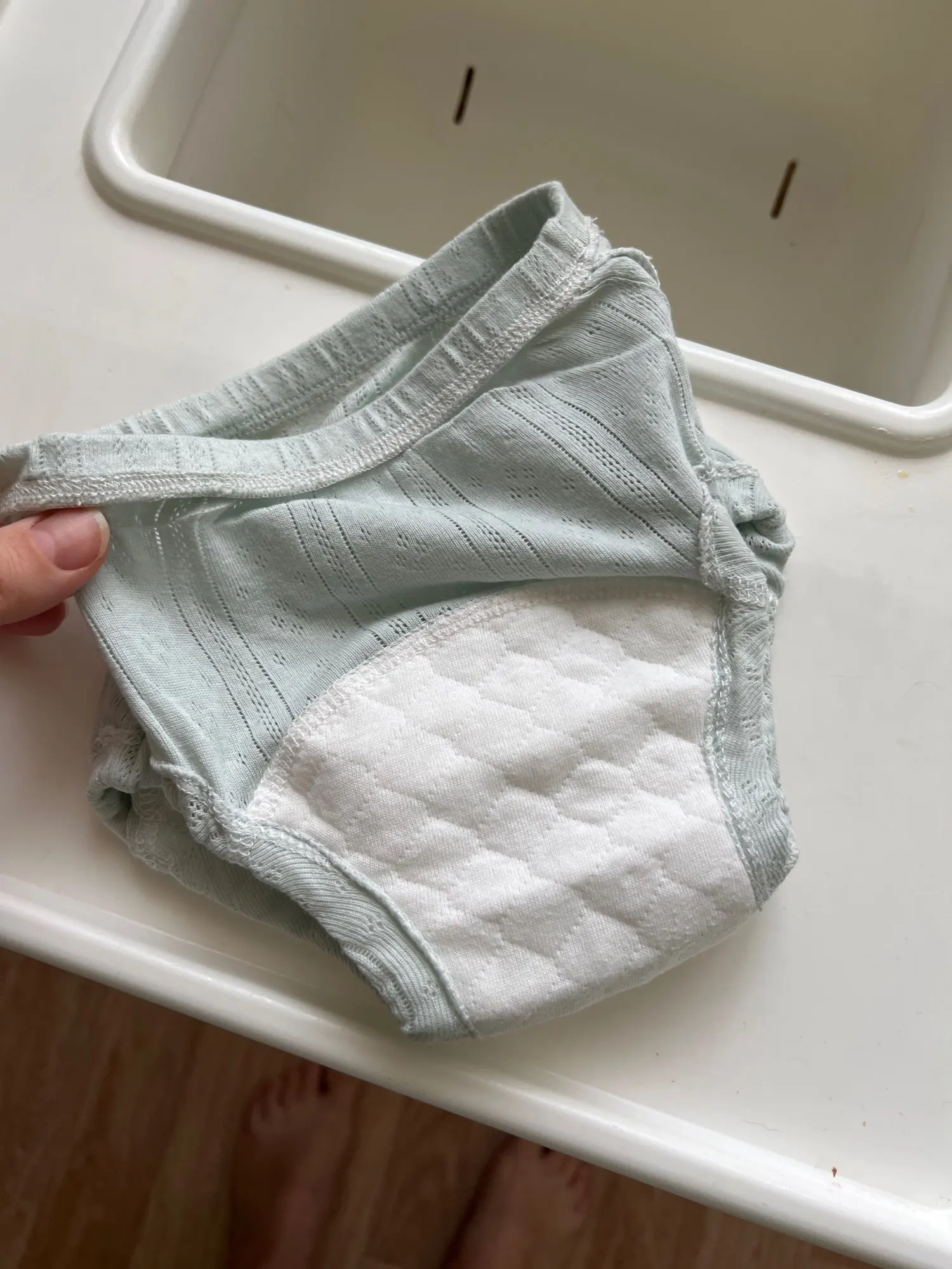 Шли долго, но не по вине продавца. Проблемы в логистике в России. Качество очень хорошее, хб. Брали на пробу. Ткань дышит по бокам,но сам низ скорее всего пленочка какая-то, не пропускает воздух совсем, мне кажется преть сильнее чем в памперсе будет и не съёмный слои туда вшит впитывающии. Резиночки мягкие не давят. Но нам не подойдёт такой вариант.