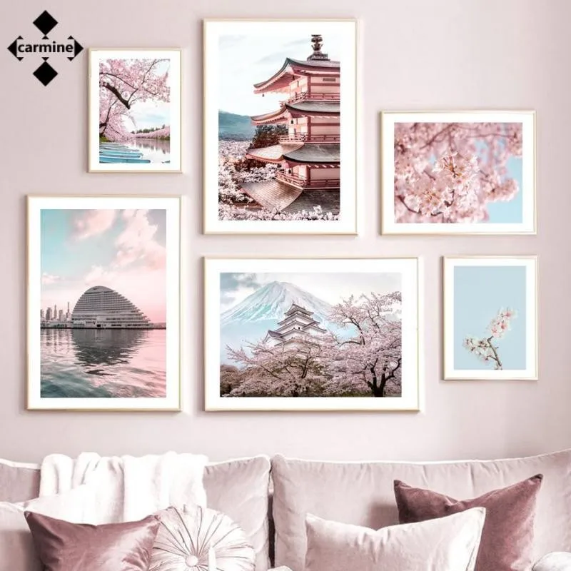 Пейзаж из Японии, Картина на холсте, Настенная картина Fuji, постеры и фотообои с изображением Токийской сакуры для украшения гостиной