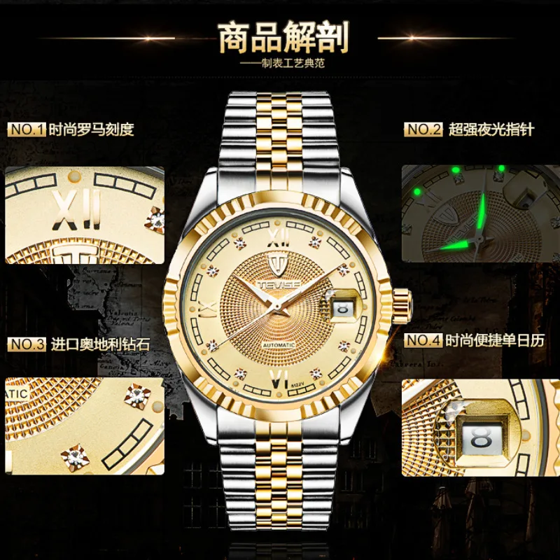 Часы мужские швейцарские TEVISE Twist, Новые водонепроницаемые, автоматические, механические