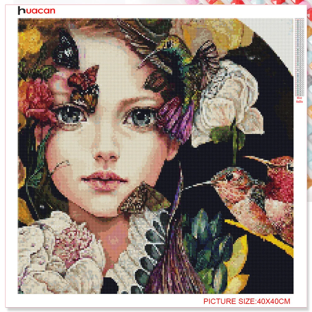 Алмазная мозаика Huacan, вышивка крестиком для девушек и женщин, картина с цветами, портрет Стразы, домашний декор