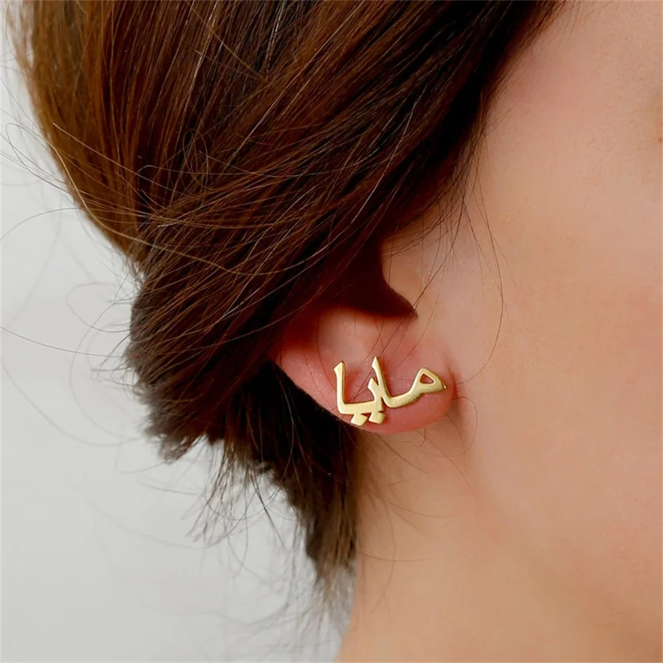 Женские золотые серьги-гвоздики из нержавеющей стали, с арабским именем
