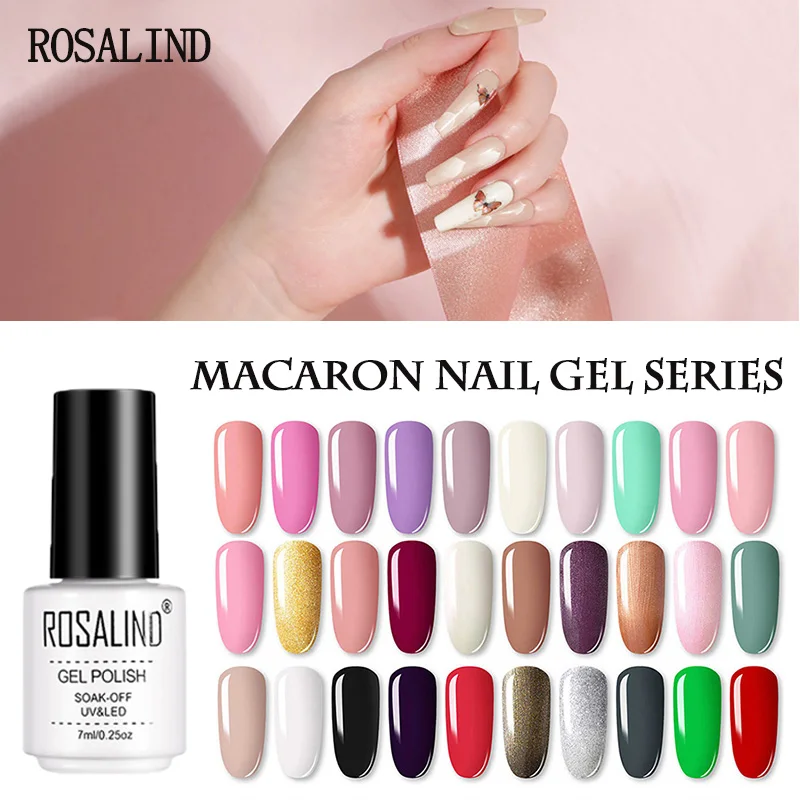 Полуперманентный Гель-лак для ногтей Rosalind 7 мл, гибридный лак для художественного украшения, маникюра, удаляемый замачиванием, чистый макарон, УФ База, верхние ногти