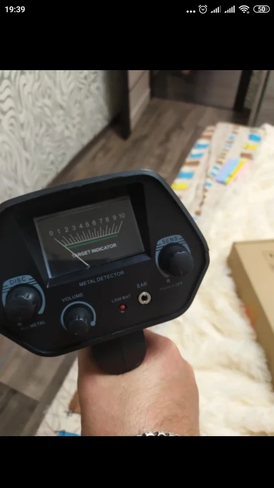 Доставка оч.быстрая.Работает от 2 батареек,,Крона".Проверили на огороде-нашли 2 гвоздя.Продавцу удачи.Спасибо.