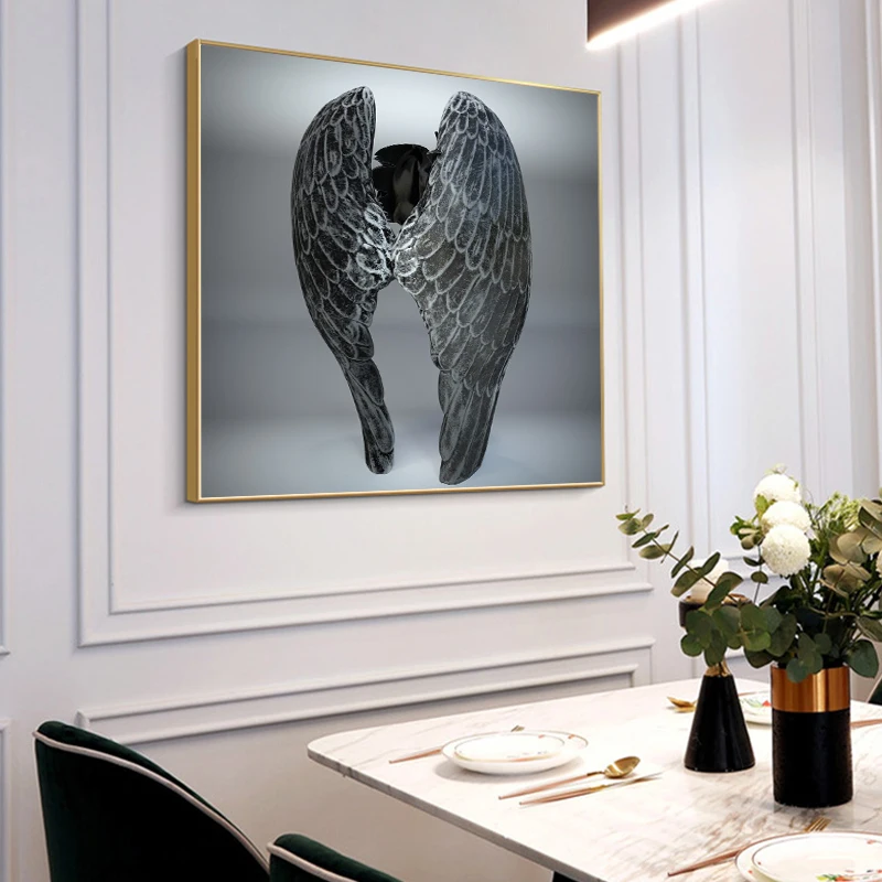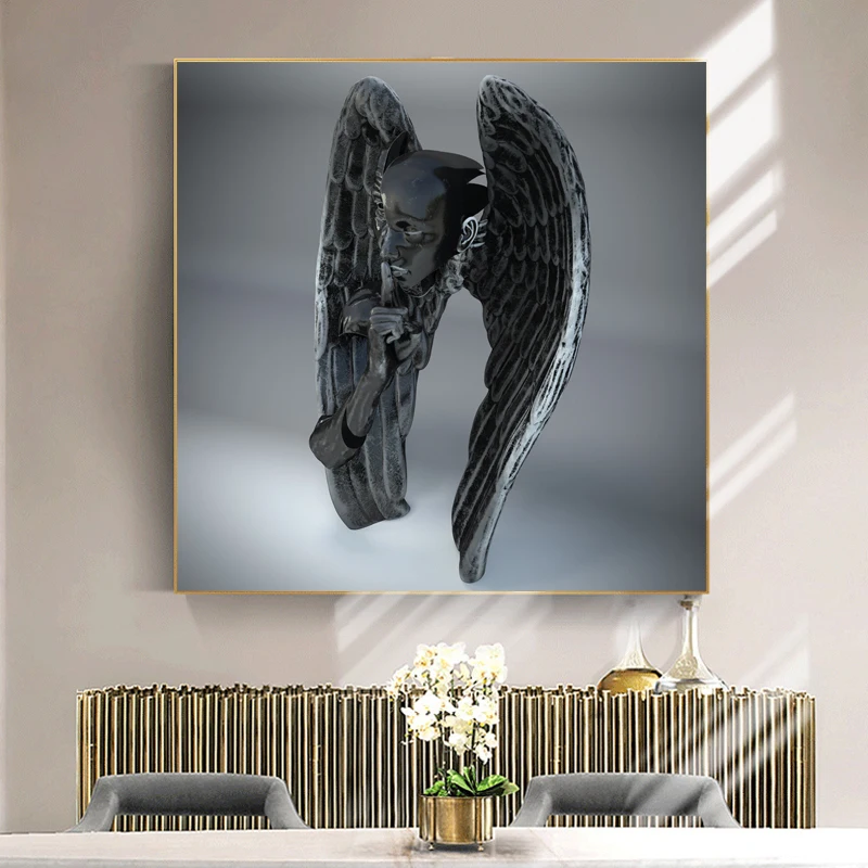 Забавный ангел, металлическая скульптура, искусство на холсте, картина, Скандинавская статуя, настенные картины, гостиная, домашний декор