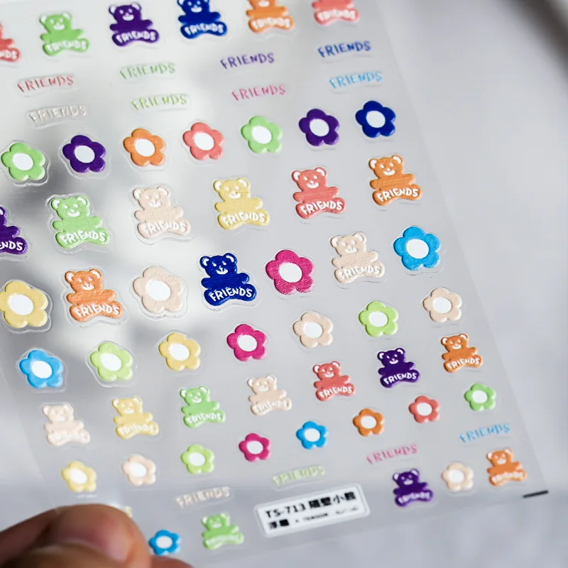 Мультяшный медведь 5D наклейки для ногтей персонаж палка фигурки Слайдеры для ногтей маникюр рука макияж Прямая поставка T1104