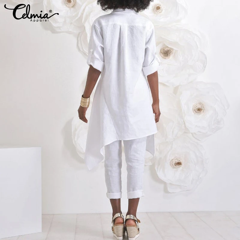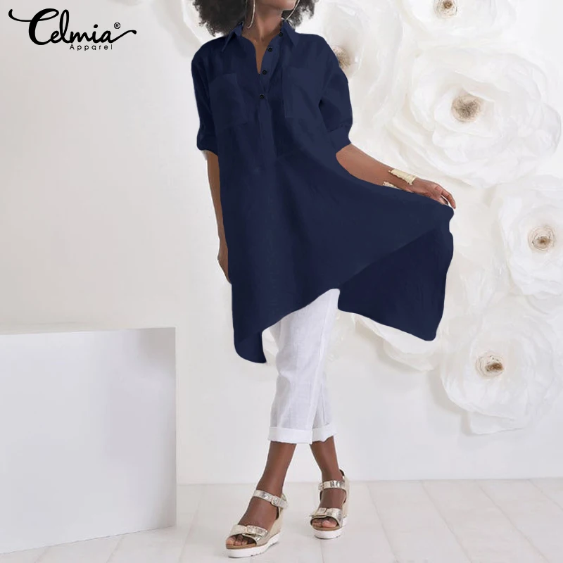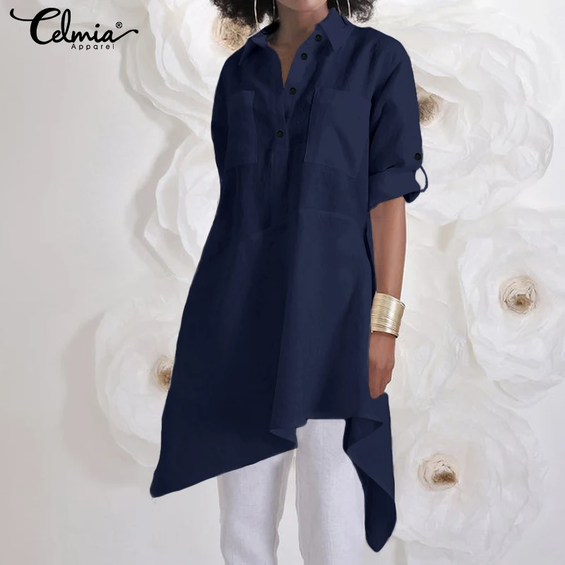 Celmia женские Асимметричные Длинные Блузки 2021 Осенняя Повседневная рубашка женская блузка на пуговицах с длинным рукавом свободная туника для отдыха женские топы