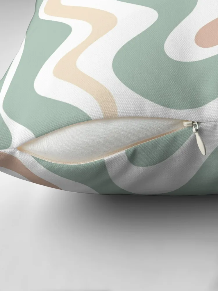 Подушка в виде жидкой завивки с абстрактным рисунком бежевая и зеле...