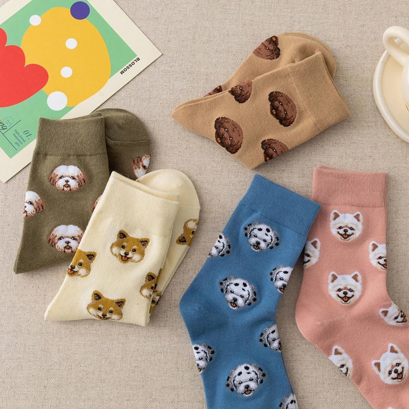 1 пара милых мультяшных собачьих средних носков, японские Творческие Женские носки в стиле Ins, шибалну, далматинский фаллоимитатор, Тедди, померанский дропшиппинг