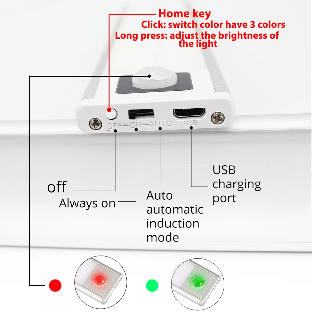 Новый светодиодный светильник, трехцветный светильник для шкафа с плавным затемнением, светодиодный светильник с датчиком движения, многофункциональный светильник для шкафа