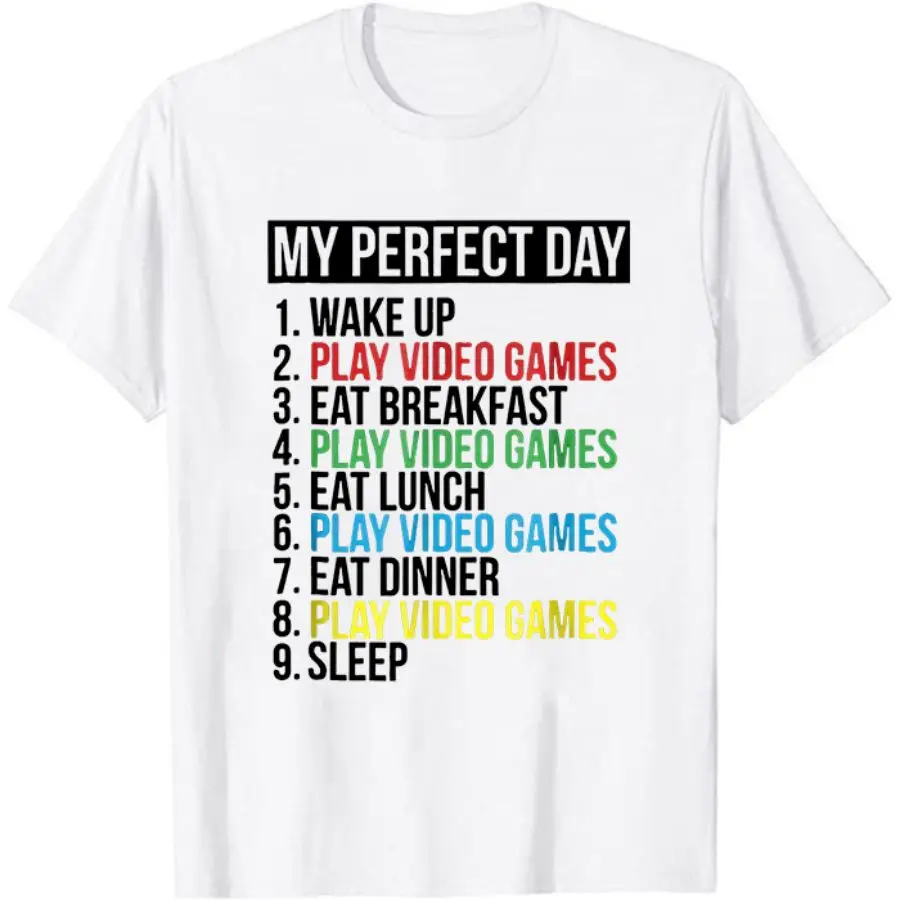 Модная мужская футболка My Perfect Day, футболка для видеоигр, Забавный классный товар, забавный подарок для геймеров, хипстер, унисекс, с коротким рукавом