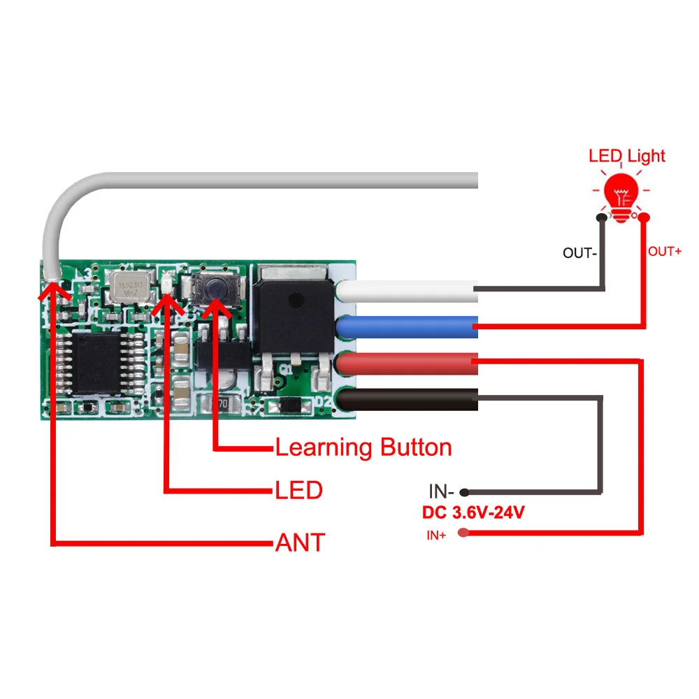 Номер модели3.6V 5V 9V 12V 24V 433 MHz Remote Control Switch Led Light Controller