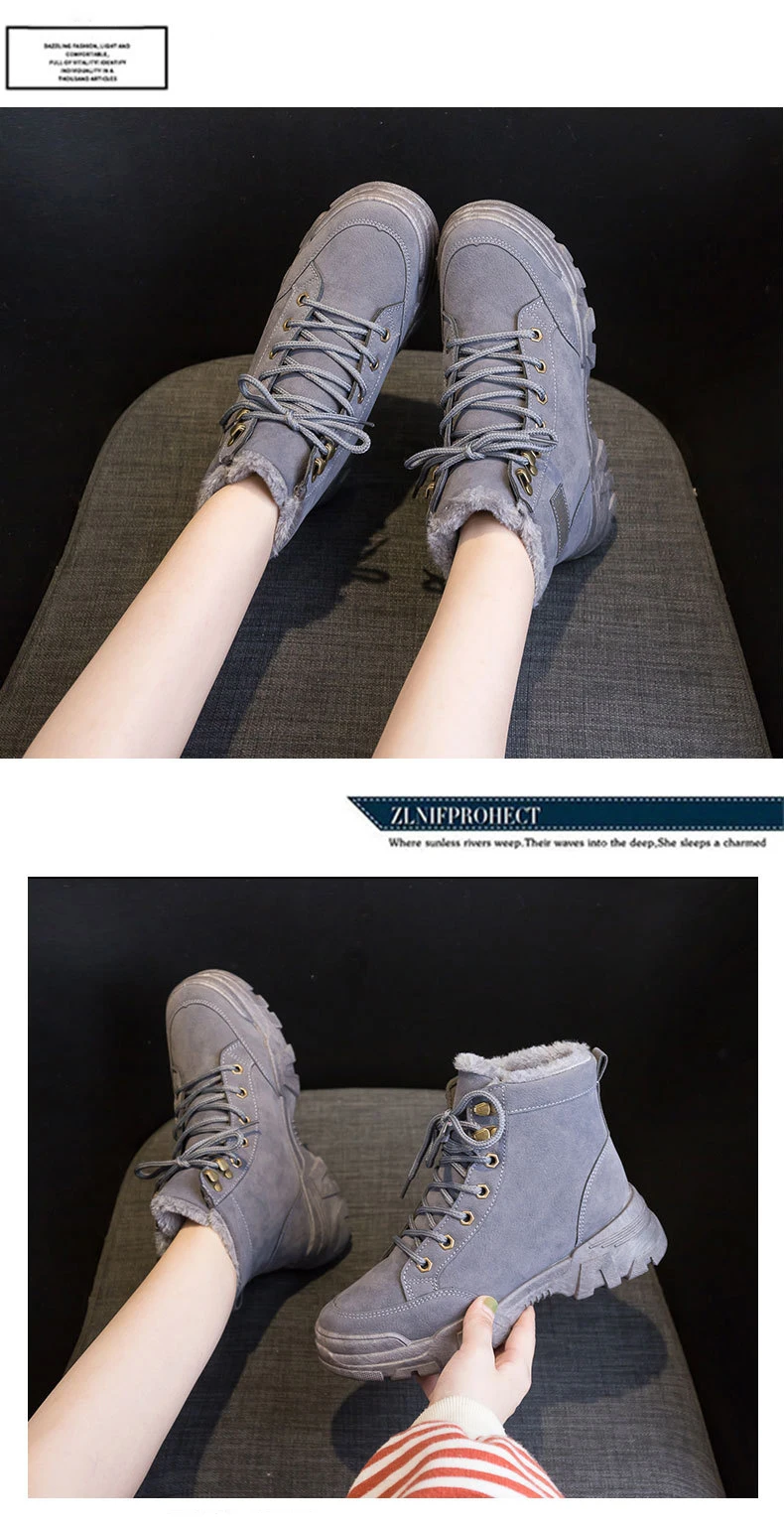 Женские зимние ботинки 2021, теплые ботинки на плоской подошве, женская обувь на шнуровке, новая женская обувь, замшевые ботильоны, женские ботинки